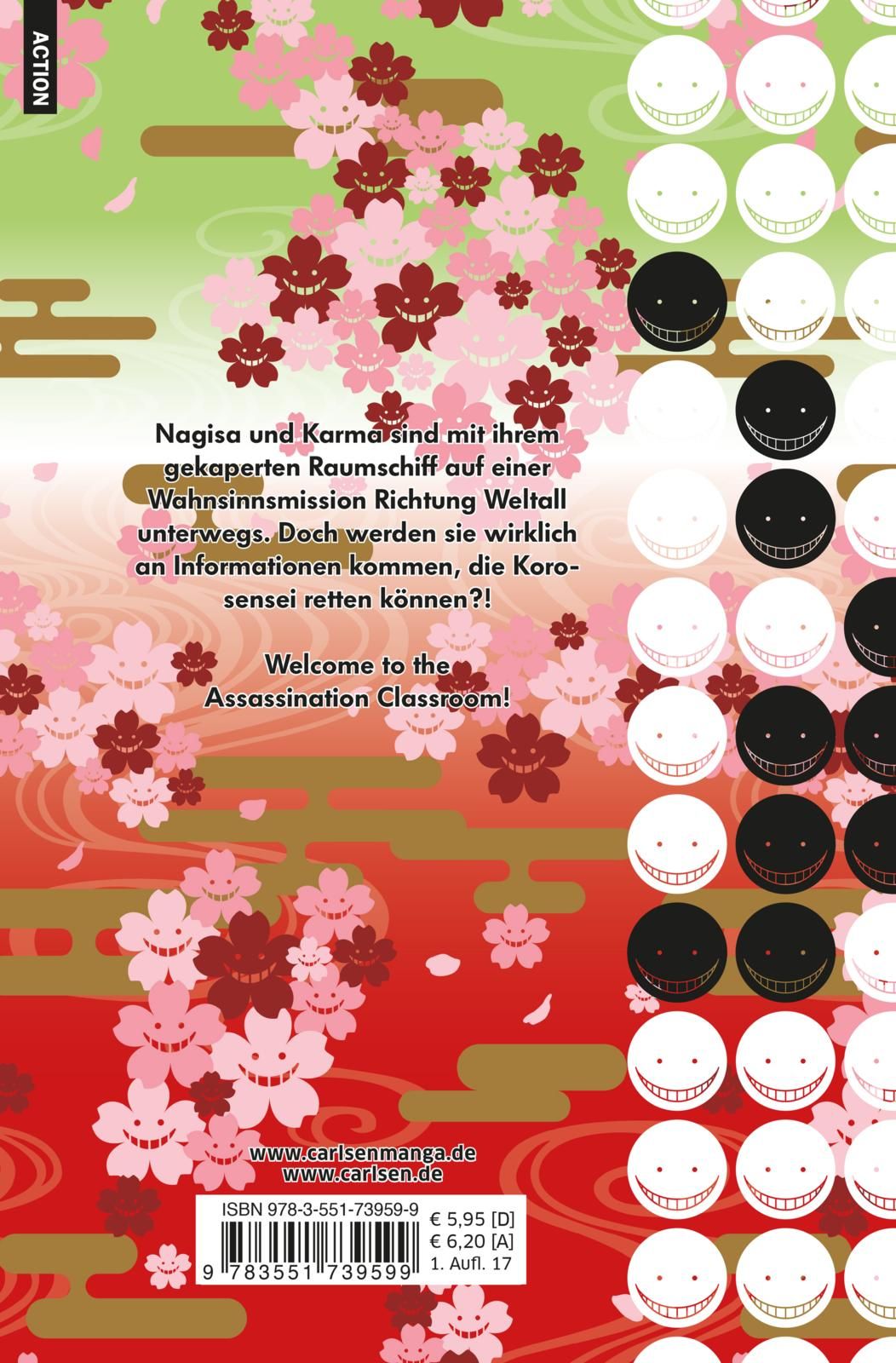 Killer gegen Retter! Im finalen Zweikampf um den weiteren Umgang mit Korosensei stehen sich Nagisa und Karma gegenüber. Und als die Schüler ein Projekt entdecken, bei dem sowohl die Erde als auch Korosensei gerettet werden können, reisen zwei von ihnen ins All!