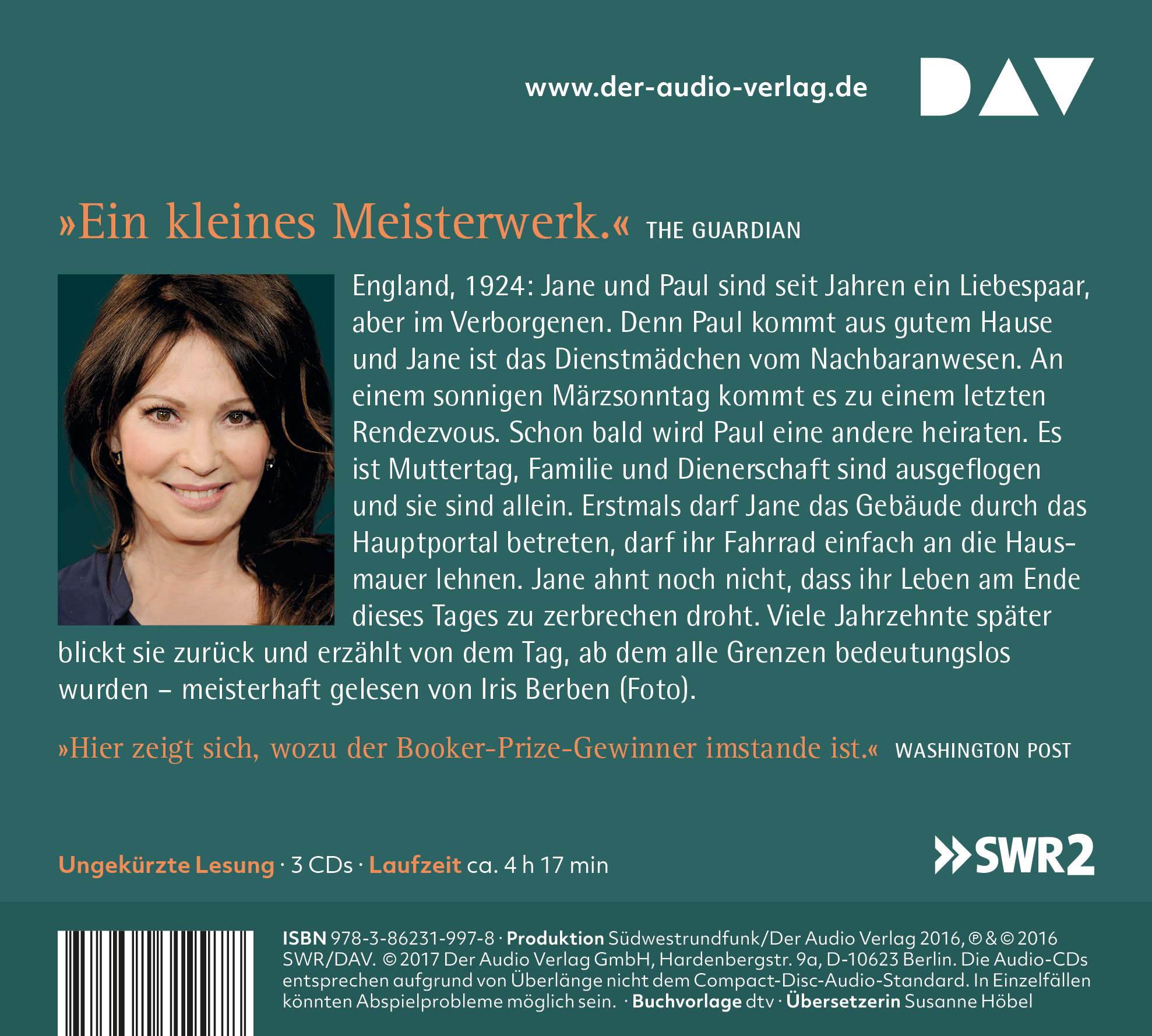 | Schlagworte | Adel • Alter • Belletristik in Übersetzung • Booker Preis • Downton Abbey • England • Erinnerung • Heimliche Liebe • Hörbuch; Literaturlesung • Moderne und zeitgenössische Belletristik • Romantik • Schriftsteller • verboten |