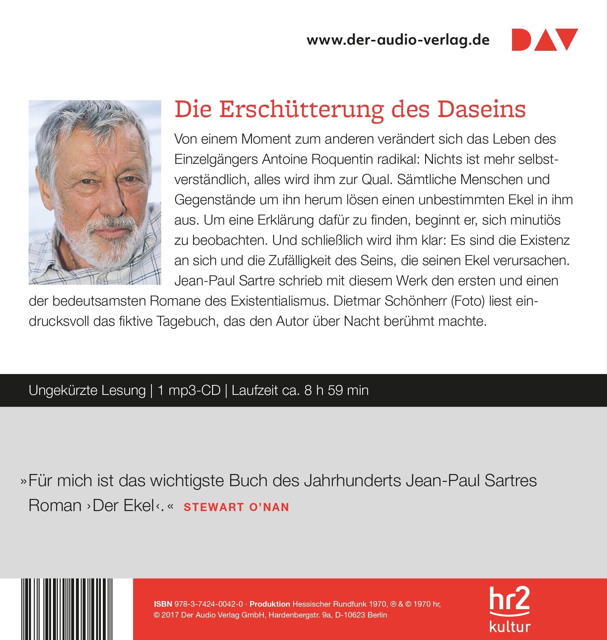 | Schlagworte | 20. Jahrhundert (1900 bis 1999 n. Chr.) • Angst • Camus • Die Fliegen • Die Wörter • Dramatiker • Existentialismus • Frankreich • Hörbuch; Literaturlesung • Lebensthemen / Lebensbewältigung; Romane/Erzählungen • Moderne und zeitgenössische Belletristik • Philosoph • Simone de Beauvoir • Verzweiflung |