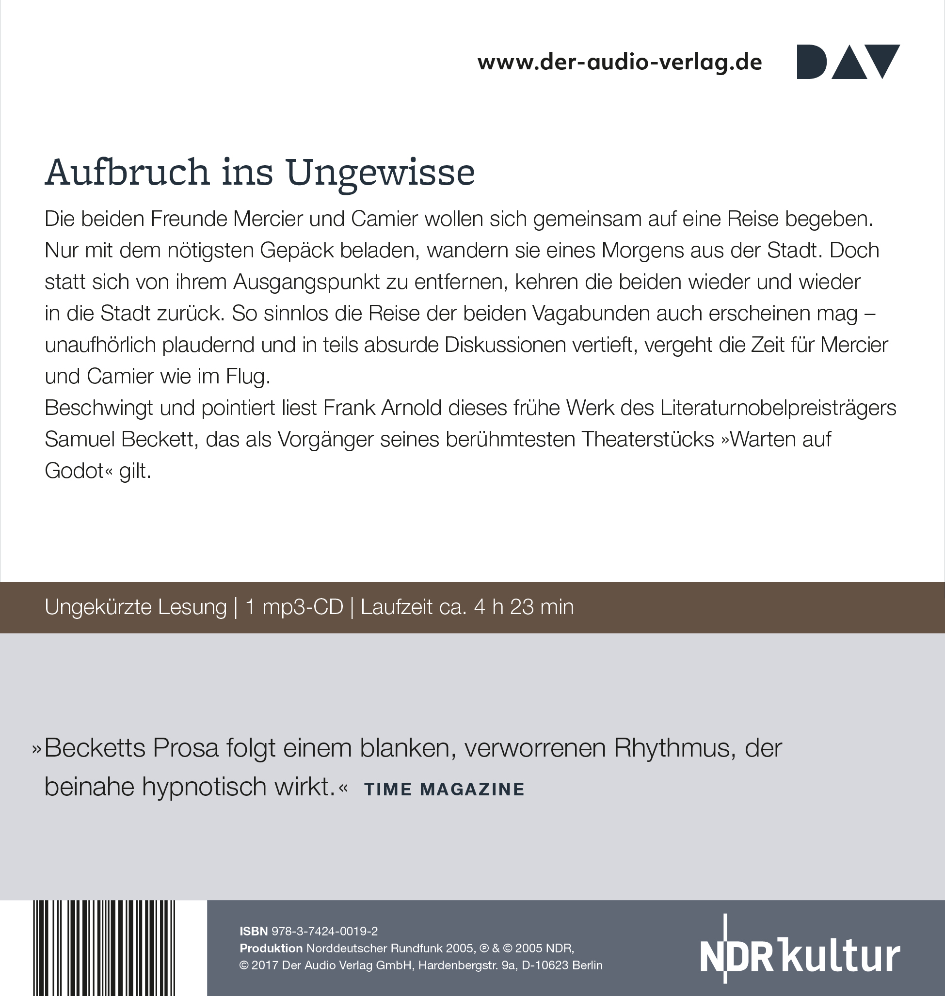 »Becketts Prosa folgt einem blanken, verworrenen Rhythmus, der beinahe hypnotisch wirkt.« TIME MAGAZINE
