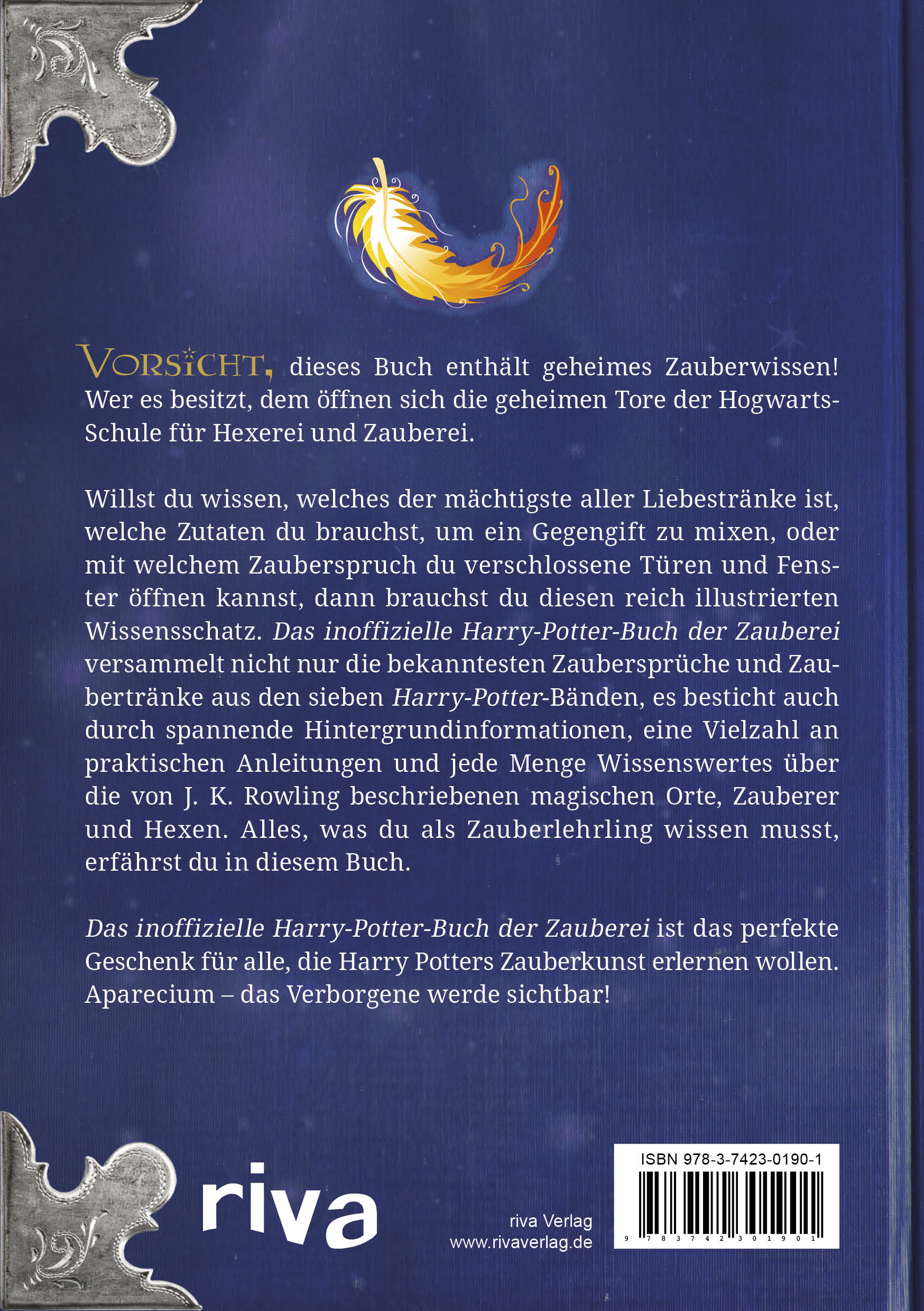Vorsicht, dieses Buch enthält geheimes Zauberwissen! Wer es besitzt, dem öffnen sich die geheimen Tore der Hogwarts-Schule für Hexerei und Zauberei.Willst du wissen, welches der mächtigste aller Liebestränke ist, welche Zutaten du brauchst, um ein Gegengift zu mixen, oder mit welchem Zauberspruch du verschlossene Türen und Fenster öffnen kannst, dann brauchst du diesen reich illustrierten Wissensschatz. Das inoffizielle Harry-Potter-Buch der Zauberei versammelt nicht nur die bekanntesten Zaubersprüche und Zaubertränke aus den sieben Harry-Potter-Bänden, es besticht auch durch spannende Hintergrundinformationen, eine Vielzahl an praktischen Anleitungen und jede Menge Wissenswertes über die von J. K. Rowling beschriebenen magischen Orte, Zauberer und Hexen. Alles, was du als Zauberlehrling wissen musst, erfährst du in diesem Buch.Das inoffizielle Harry-Potter-Buch der Zauberei ist das perfekte Geschenk für alle, die Harry Potters Zauberkunst erlernen wollen. Aparecium - das Verborgene werde sichtbar!