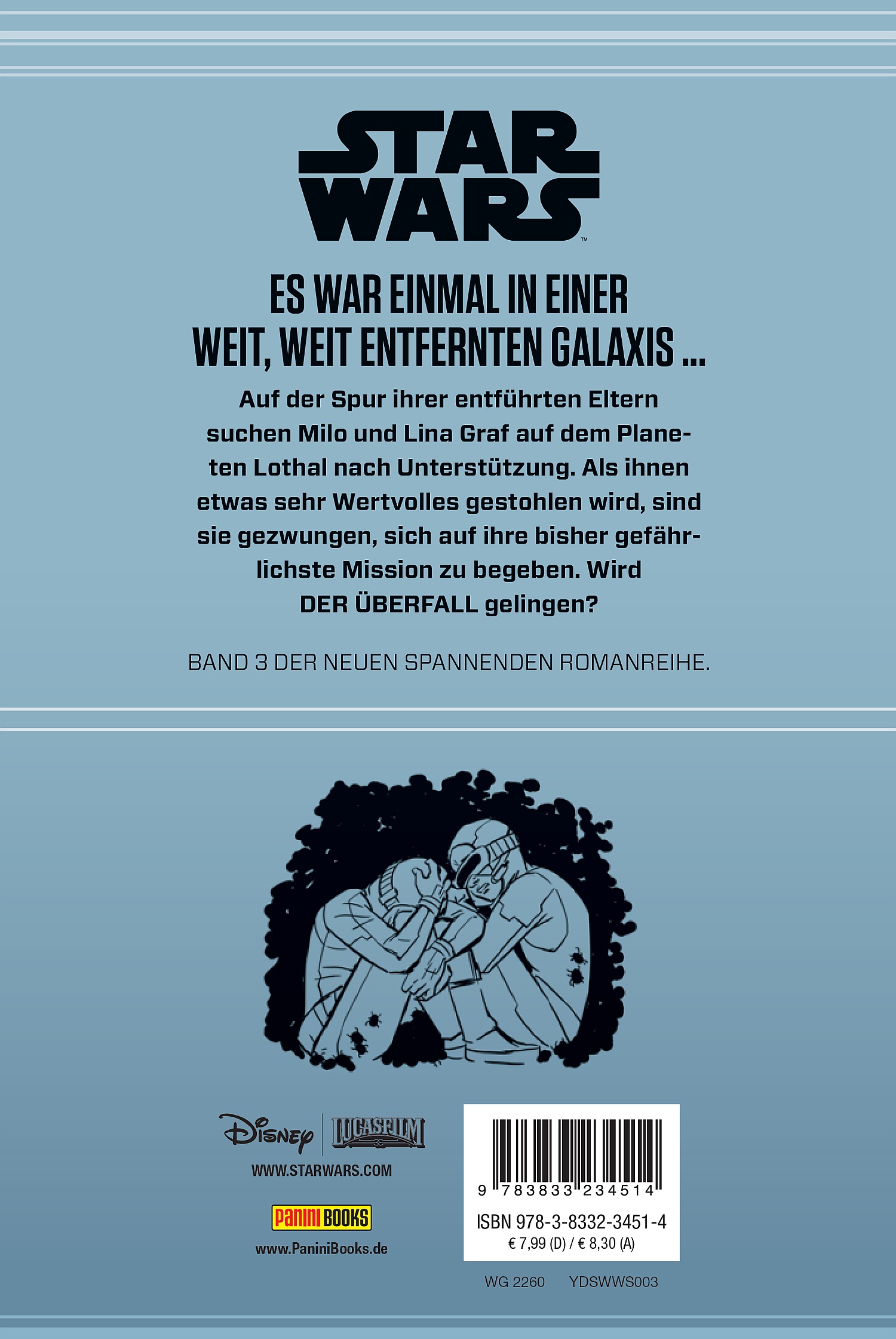 Das dritte, galaktische Abenteuer innerhalb der brandneuen Jugend-Romanreihe: Noch immer auf der verzweifelten Suche nach ihren von Captain Korda entführten Eltern, gelangen Lina und Milo Graf auf den abgelegenen Planten Lothal, in der Hoffnung hier einen Verbündeten zu finden. Als ihnen jedoch etwas extrem Kostbares gestohlen wird, sind sie gezwungen, sich auf ihre bisher mit Abstand gefährlichste Mission zu begeben!