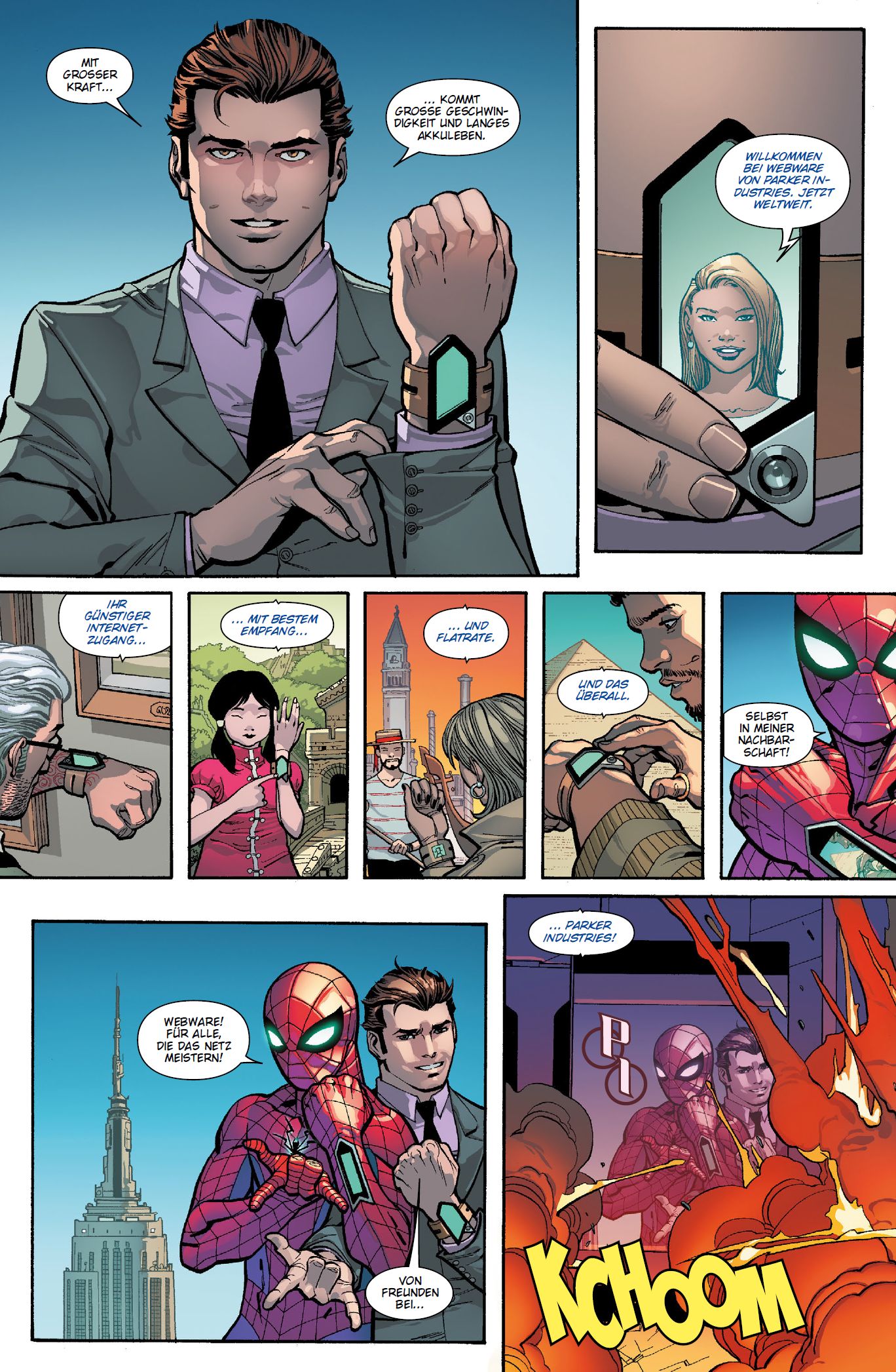 WELTWEITER WANDKRABBLERPeter Parker ist der sensationelle Spider-Man! Als kostümierter Held und Chef des Firmengiganten Parker Industries agiert er so international wie nie zuvor und nutzt seine Ressourcen für den Kampf gegen das Böse. Zusammen mit Prowler, Mockingbird und SHIELD stellt er sich den Terroristen von Zodiac und jagt sie unter anderem im neuen Spider-Mobil durch Shanghai oder stellt sie in Englands Hauptstadt London. Und während Peters Tante May in Afrika ein ernstes Kobold-Problem bekommt, arbeiten noch andere alte Erzfeinde des Netzschwingers an ihrem Comeback...Dieser spektakuläre erste Sammelband der brandneuen SPIDER-MAN-Serie läutet für Spidey eine aufregende Ära ein! Inszeniert von Star-Autor Dan Slott und Top-Zeichner Giuseppe Camuncoli, dem prägenden Spidey-Dream-Team der letzten Jahre.