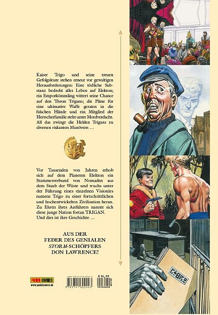 Kaiser Trigo und seine treuen Gefolgsleute stehen erneut vor gewaltigen Herausforderungen: Eine tödliche Substanz bedroht alles Leben auf Elekton; ein Emporkömmling wittert seine Chance auf den Thron Trigans; die Pläne für eine ultimative Waffe geraten in die falschen Hände und ein Mitglied der Herrscherfamilie steht unter Mordverdacht. All das zwingt die Helden Trigans zu diversen riskanten Manövern... Vor Tausenden von Jahren erhob sich auf dem Planeten Elekton ein Stammesverbund von Nomaden aus dem Staub der Wüste und wuchs unter der Führung eines einzelnen Visionärs namens Trigo zu einer fortschrittlichen und hochentwickelten Zivilisation heran. Zu Ehren ihres Anführers nannte sich diese junge Nation fortan TRGAN. Und dies ist ihre Geschichte...Autor: Mike ButterworthZeichner: Don Lawrence