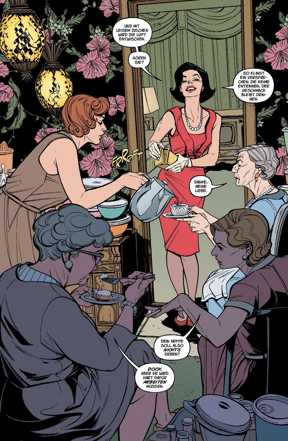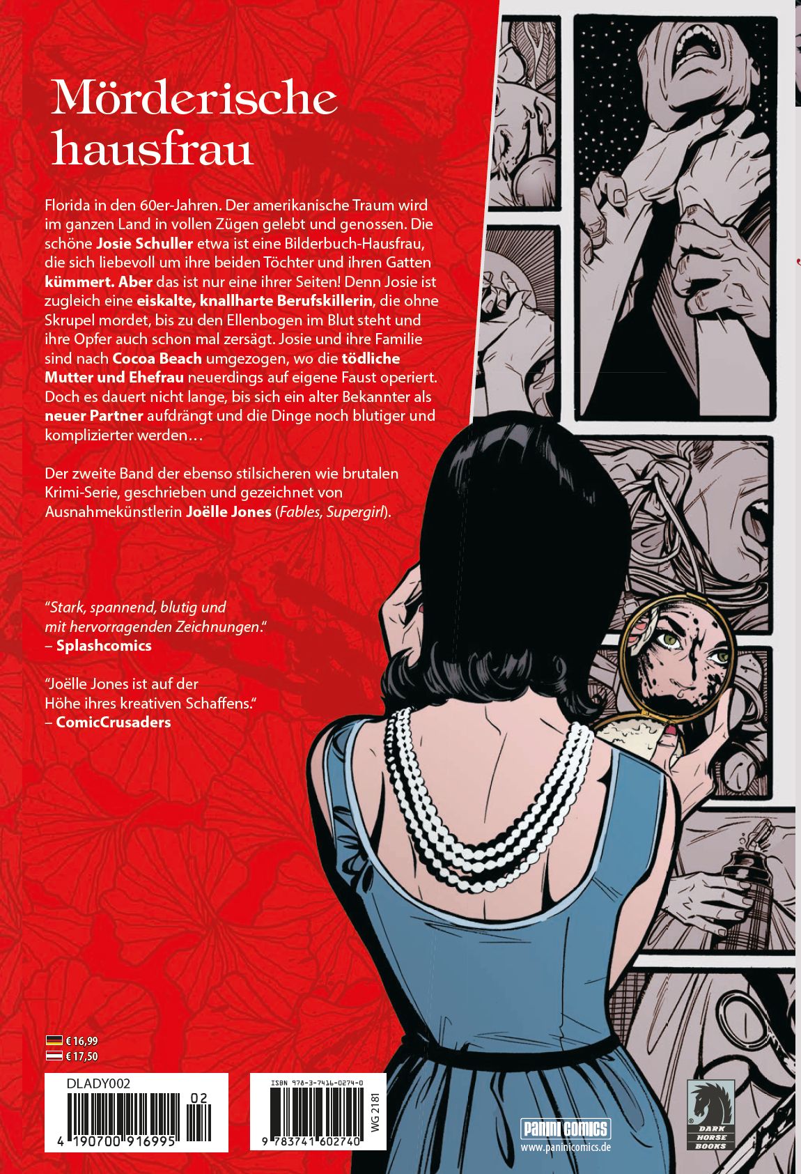 Mörderische HausfrauFlorida in den 60er-Jahren. Der amerikanische Traum wird im ganzen Land in vollen Zügen gelebt und genossen. Die schöne Josie Schuller etwa ist eine Bilderbuch-Hausfrau, die sich liebevoll um ihre beiden Töchter und ihren Gatten kümmert. Aber das ist nur eine ihrer Seiten! Denn Josie ist zugleich eine eiskalte, knallharte Berufskillerin, die ohne Skrupel mordet, bis zu den Ellenbogen im Blut steht und ihre Opfer auch schon mal zersägt. Josie und ihre Familie sind nach Cocoa Beach umgezogen, wo die tödliche Mutter und Ehefrau neuerdings auf eigene Faust operiert. Doch es dauert nicht lange, bis sich ein alter Bekannter als neuer Partner aufdrängt und die Dinge noch blutiger und komplizierter werden...Der zweite Band der ebenso stilsicheren wie brutalen Krimi-Serie, geschrieben und gezeichnet von Ausnahmekünstlerin Joëlle Jones (Fables, Supergirl).