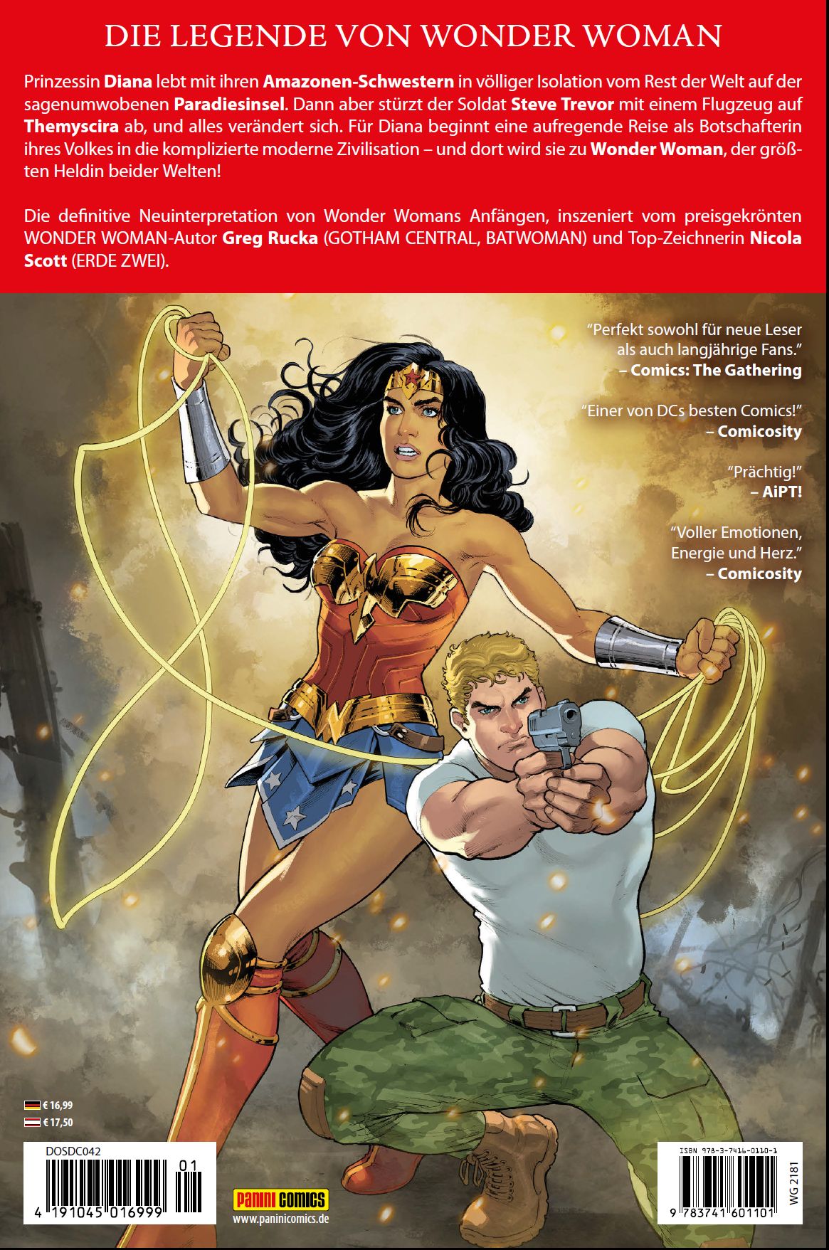 WIE ALLES BEGANN…von Christian Endres Prinzessin Diana von den Amazonen ist Wonder Woman, die größte Heldin des DC-Universums und eine der beliebtesten und bekanntesten Superheldinnen aller Zeiten. Bereits 1941 wurde sie vom amerikanischen Autor, Lügendetektor-Erfinder und Psychologen William Moulton Marston erschaffen. Seither hat die Tochter der von Frauen bewohnten und regierten Paradiesinsel namens Themyscira viele Abenteuer in der modernen Welt der Menschen erlebt, die von zahlreichen Autoren und Zeichnern gestaltet wurden. Bestseller-Autor Greg Rucka, dessen Schaffen sich u. a. durch komplexe Frauenfiguren auszeichnet, zählt dabei ohne Frage zu den besten Kreativen der langen Wonder Woman-Historie. Bereits 2002 schrieb er den viel gelobten Einzelband WONDER WOMAN: HIKETEIA, ehe er kurz darauf ein erstes Mal für längere Zeit Stammautor von Dianas fortlaufenden Soloabenteuern wurde. Fast genau zehn Jahre später wurde Rucka ein zweites Mal Autor der Serie WONDER WOMAN. Doch er beschränkt sich diesmal nicht darauf, zu erzählen, wie Dianas Erinnerungen und Leben manipuliert wurden und was sie dagegen tut. Gleichzeitig lenkt er geschickt seine Sicht von Dianas Charakter, Leben und Wirken, um ihre Herkunftsgeschichte und ihre Anfänge neu zu erzählen – und genau dieser Neuinterpretation von Wonder Womans sogenannter Origin widmet sich der vorliegende, in sich abgeschlossene Band. Außerdem wird die Vergangenheit von Barbara Ann Minerva, Wonder Womans bestialischer Feindin Cheetah, in neuem Licht betrachtet. Dass die ersten Schritte der großen Heldenfiguren immer wieder neu erzählt und jedes Mal ein Stück weit angepasst und aktualisiert werden, ist ein fester Bestandteil der Superhelden-Comic-Kultur. Seit dem Klassiker BATMAN: DAS ERSTE JAHR von Frank Miller und David Mazzucchelli aus dem Jahr 1987 hat der Storyline-Titel Das erste Jahr sogar regelrecht Signalwirkung für solche Neuinterpretationen. Als Zeichner dieses Bandes fungieren die Australierin Nicola Scott und die Brasilianerin Bilquis Evely, deren Artwork der philippinische Kolorist Romulo Fajardo Jr. in prächtigen Farben erstrahlen lässt. Gemeinsam kleiden sie Greg Ruckas einfühlsame Story und Dianas erste Schritte auf dem Weg zur größten Heldin der Welt in atemberaubende Bilder. Ganz egal, ob man zum ersten oder wiederholten Male die Anfänge der fantastischen Legende von Wonder Woman liest – diese Neufassung ist ein echtes Comic-Highlight und einer Multimedia-Ikone wie Wonder Woman mehr als würdig…