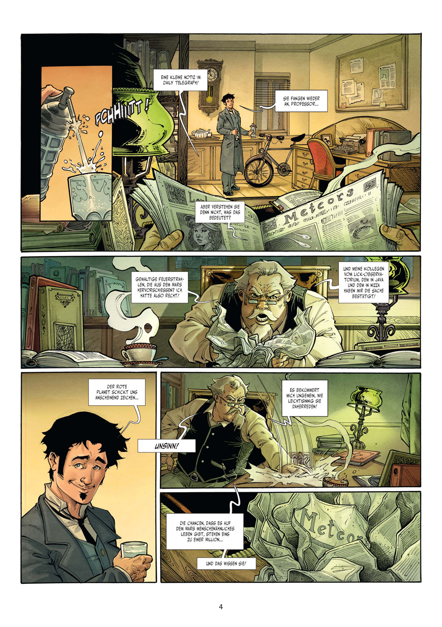 Splitter widmet dem Meister der Science Fiction eine sechsbändige PrachtausgabeH.G. Wells ist, neben Jules Verne, nicht nur ein, sondern der Ahnherr und Klassiker der modernen Science-Fiction-Literatur. Einige seiner Bücher sind Schlüsselwerke des utopischen Zukunftsromans, »Der Krieg der Welten« etwa, »Die Insel des Dr. Moreau« und natürlich »Die Zeitmaschine«. Im Laufe der Jahrzehnte sind sie unzählige Male adaptiert, interpretiert, kopiert, zitiert und auch persifliert worden. Allein »Der Krieg der Welten« ist ein äußerst beliebter Stoff, auch und gerade im Comic, und dürfte so oft im Stil der jeweiligen Zeit verarbeitet worden sein - von Orson Welles' legendärer Hörspielfassung, die 1938 in den USA angeblich für Massenpanik sorgte, bis hin zu Roland Emmerichs »Independence Day« 1 & 2 (Tim Burtons »Mars Attacks!« nicht zu vergessen) -, dass der eigentliche Urheber dahinter gerne vergessen wird.Szenarist Dobbs hat sich deshalb nun daran begeben, zusammen mit einigen ausgewählten Zeichnern eine zeitgemäße Interpretation der Hauptwerke von H.G. Wells im klassischen Geist vorzulegen - neben den eingangs genannten Titeln zudem noch »Der Unsichtbare«, ein weiteres Beispiel dafür, dass die Erzählungen von Wells stets spannend sind, unterhaltsam, auch amüsant und vor allem eins: zeitlos aktuell!