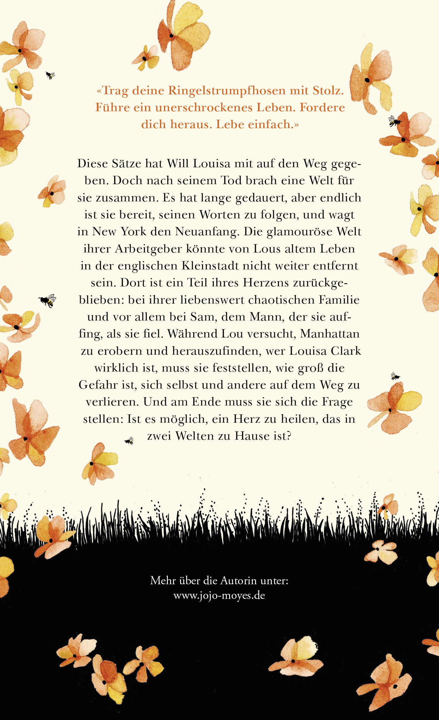 «Trag deine Ringelstrumpfhosen mit Stolz. Führe ein unerschrockenes Leben. Fordere dich heraus. Lebe einfach.» Diese Sätze hat Will Louisa mit auf den Weg gegeben. Doch ohne ihn brach eine Welt für sie zusammen. Es hat lange gedauert, aber endlich ist sie bereit, seinen Worten zu folgen und wagt in New York den Neuanfang.