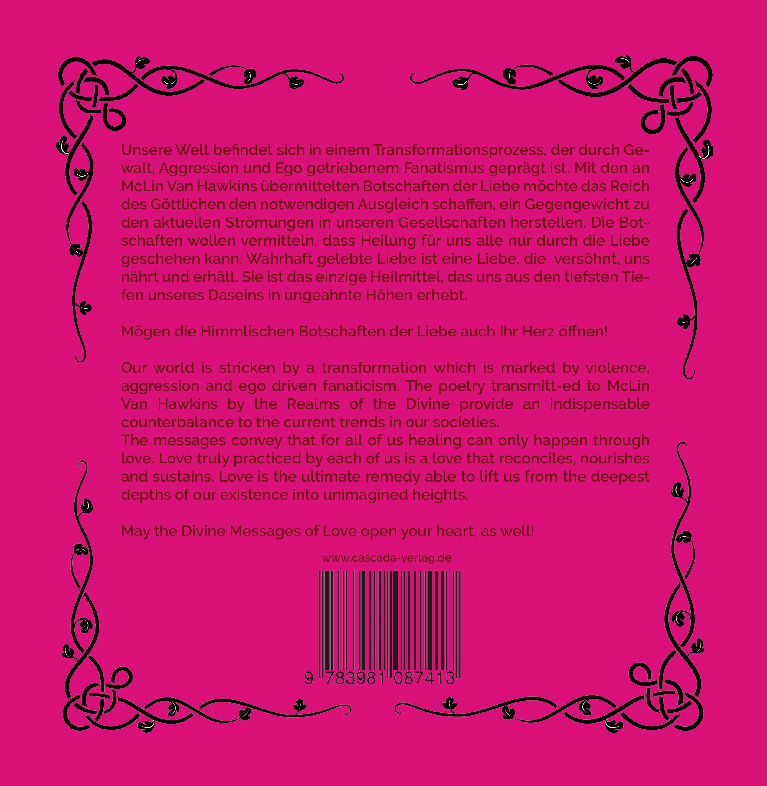 Mögen die Himmlischen Botschaften der Liebe auch Ihr Herz öffnen! Our world is stricken by a transformation which is marked by violence, aggression and ego driven fanaticism. The poetry transmitted to McLin Van Hawkins by the Realms of the Divine provide an indispensable counterbalance to the current trends in our societies.