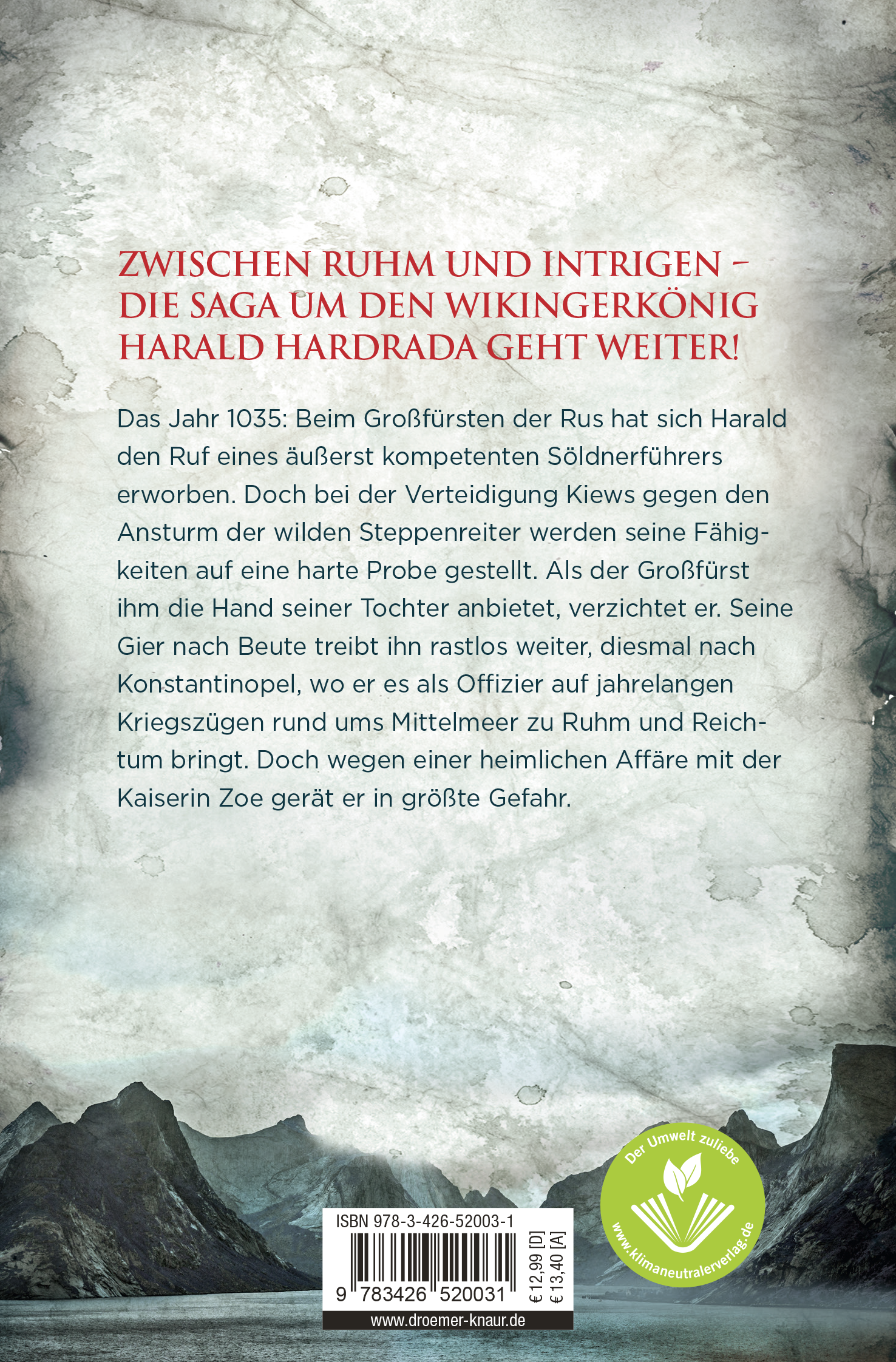 AD 1035: Beim Großfürsten der Rus hat sich Harald den Ruf eines siegreichen Söldnerführers erworben. Doch bei der Verteidigung Kiews gegen den Ansturm der Petschenegen werden seine Fähigkeiten auf eine harte Probe gestellt. Persönliche Verluste treiben ihn rastlos weiter, diesmal nach Konstantinopel, wo er es als Offizier der kaiserlichen Waräger bei jahrelangen Kriegszügen rund ums Mittelmeer zu einem beachtlichen Vermögen bringt. Doch eine Affäre mit der Kaiserin Zoe und der Neid seiner Konkurrenten bringen ihn ins Gefängnis.