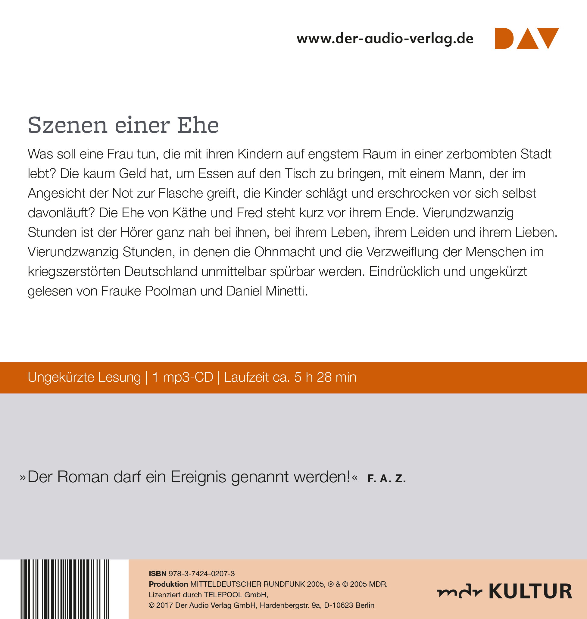 »Hier wird fündig, wer an Hörbuchproduktionen Freude hat, die nicht schnell hingeschludert sind, sondern mit einer Regie-Idee zum Text vom und für den Rundfunk produziert sind.« NDR KULTUR