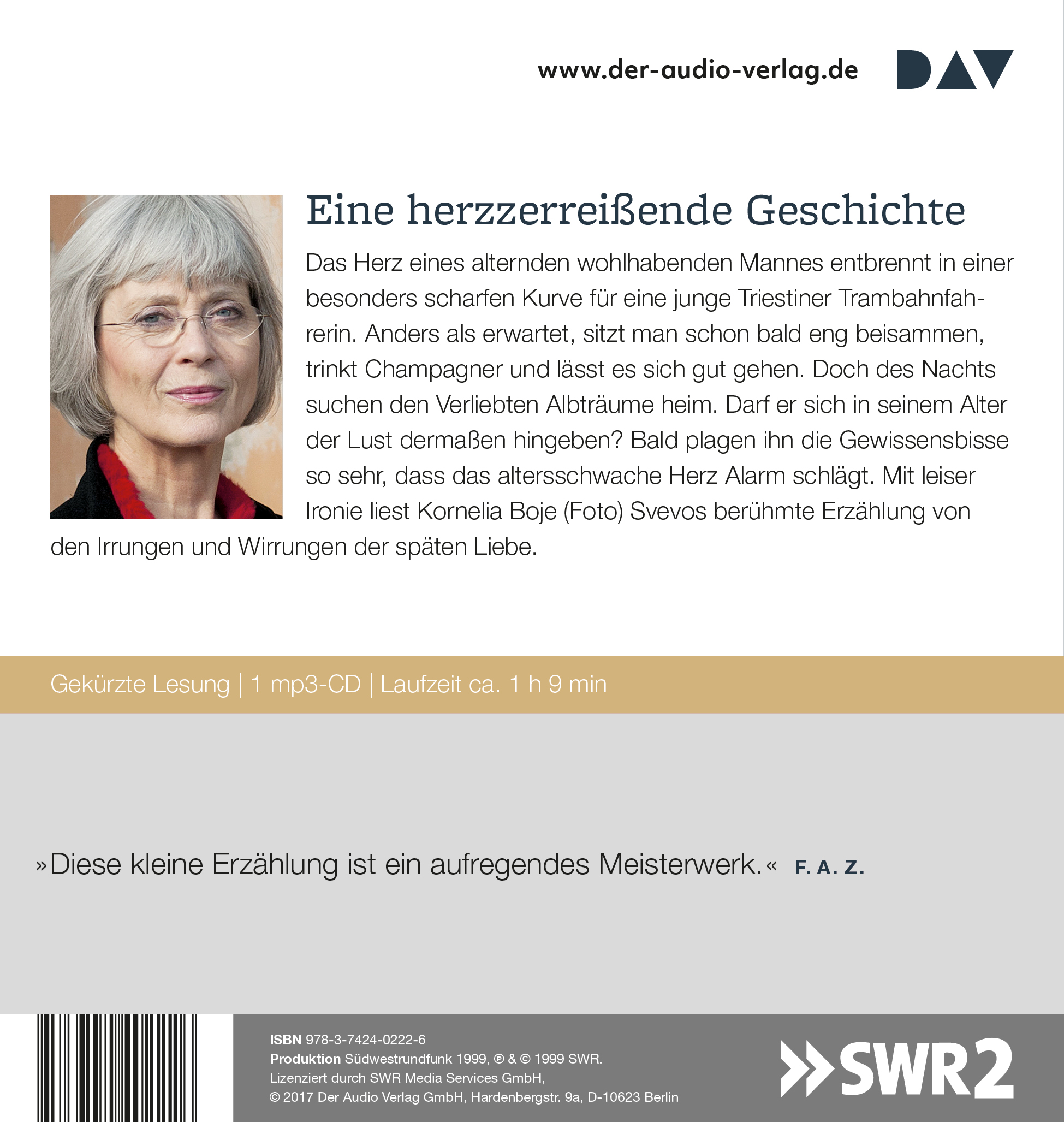 »Diese kleine Erzählung ist ein aufregendes Meisterwerk.« F.A.Z. »Es gibt keinen Zweifel: Wer sich eine Bibliothek mit Weltliteratur in Form von Hörbüchern aufbauen möchte, kommt an dieser Edition nicht vorbei.« WDR 3 »Hier wird fündig, wer an Hörbuchproduktionen Freude hat, die nicht schnell hingeschludert sind, sondern mit einer Regie-Idee zum Text vom und für den Rundfunk produziert sind.« NDR KULTUR »Mehr Zeit hätte man ja immer gern, aber für diese schönen Hörbücher [...] besonders.« WAZ »Die Hörbuch-Edition 'Große Werke. Große Stimmen.' umfasst herausragende Lesungen deutschsprachiger Sprecherinnen und Sprecher, die in den Archiven der Rundfunkanstalten schlummern.« SAARLÄNDISCHER RUNDFUNK
