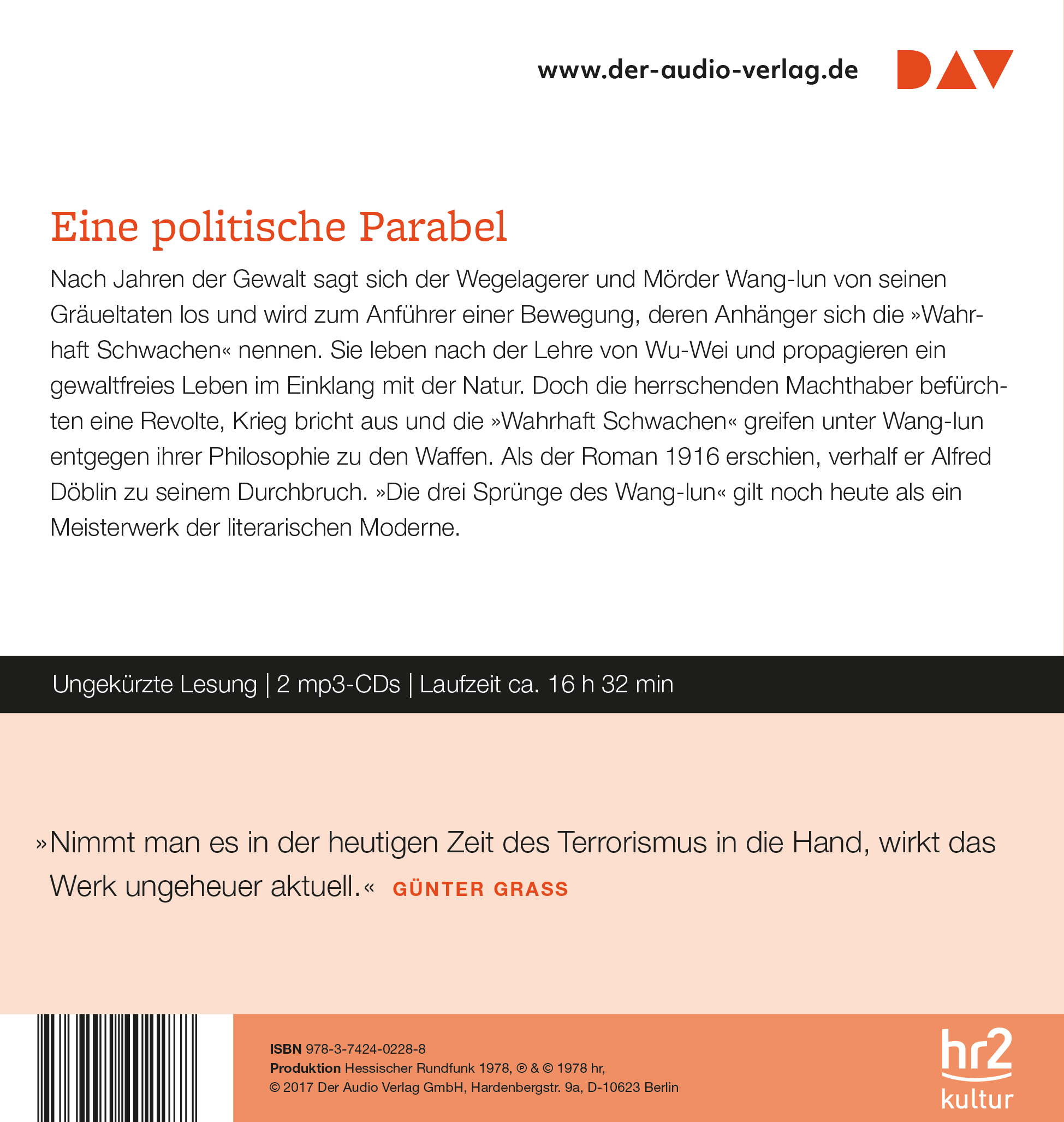 | Schlagworte | Abenteuerromane • Belletristik: Themen, Stoffe, Motive: Soziales • Berlin Alexanderplatz • China • Debüt • Expressionismus • Franz Biberkopf • Historischer Roman • Hörbuch; Literaturlesung • Klassische Belletristik • Moderne |