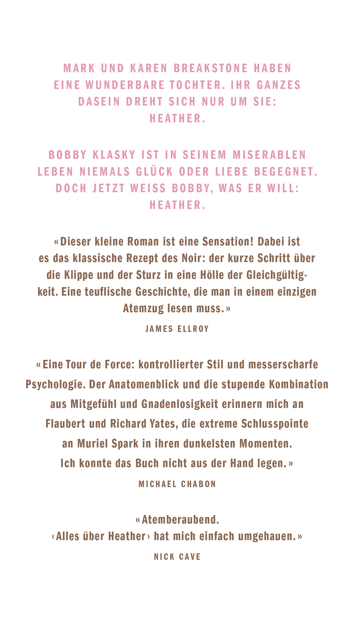 Alles über Heather ist ein großartiger Psychothriller in der Tradition von Richard Yates und F. Scott Fitzgerald, eine Psychopathologie der amerikanischen Elternschaft, ihrer innersten Wünsche und Hoffnungen, Träume und Obsessionen.
