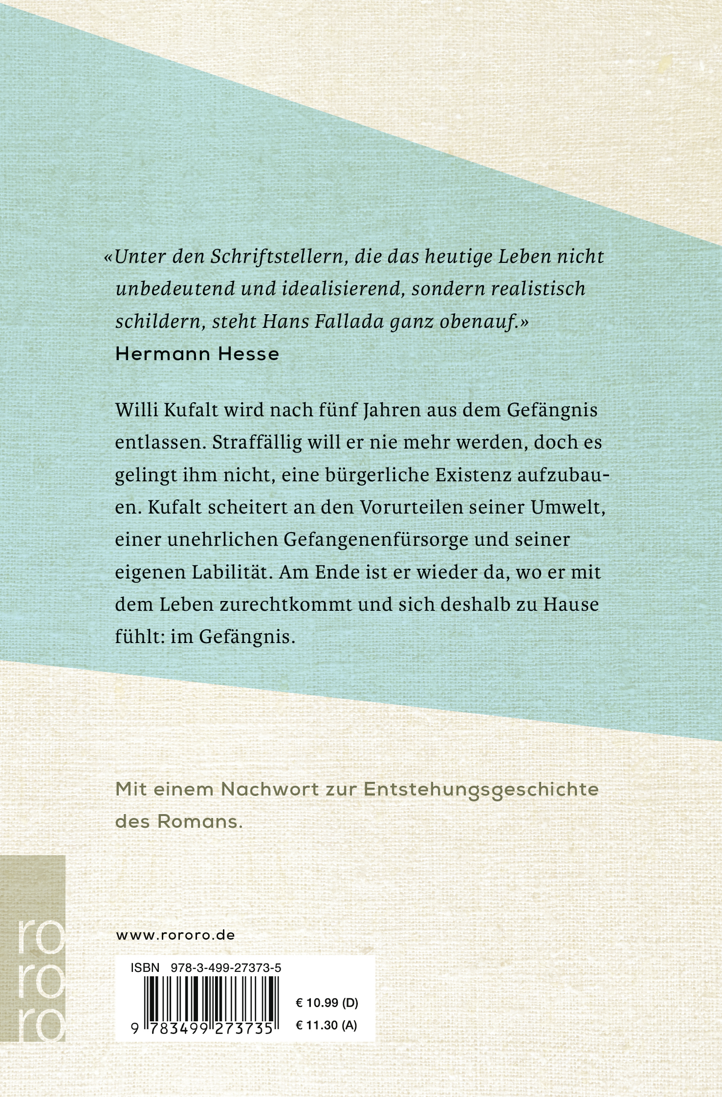 Unter den Schriftsellern, die das heutige Leben nicht unbedeutend und idealisierend, sondern realistisch schildern, steht Hans Fallada ganz obenauf. Hermann Hesse