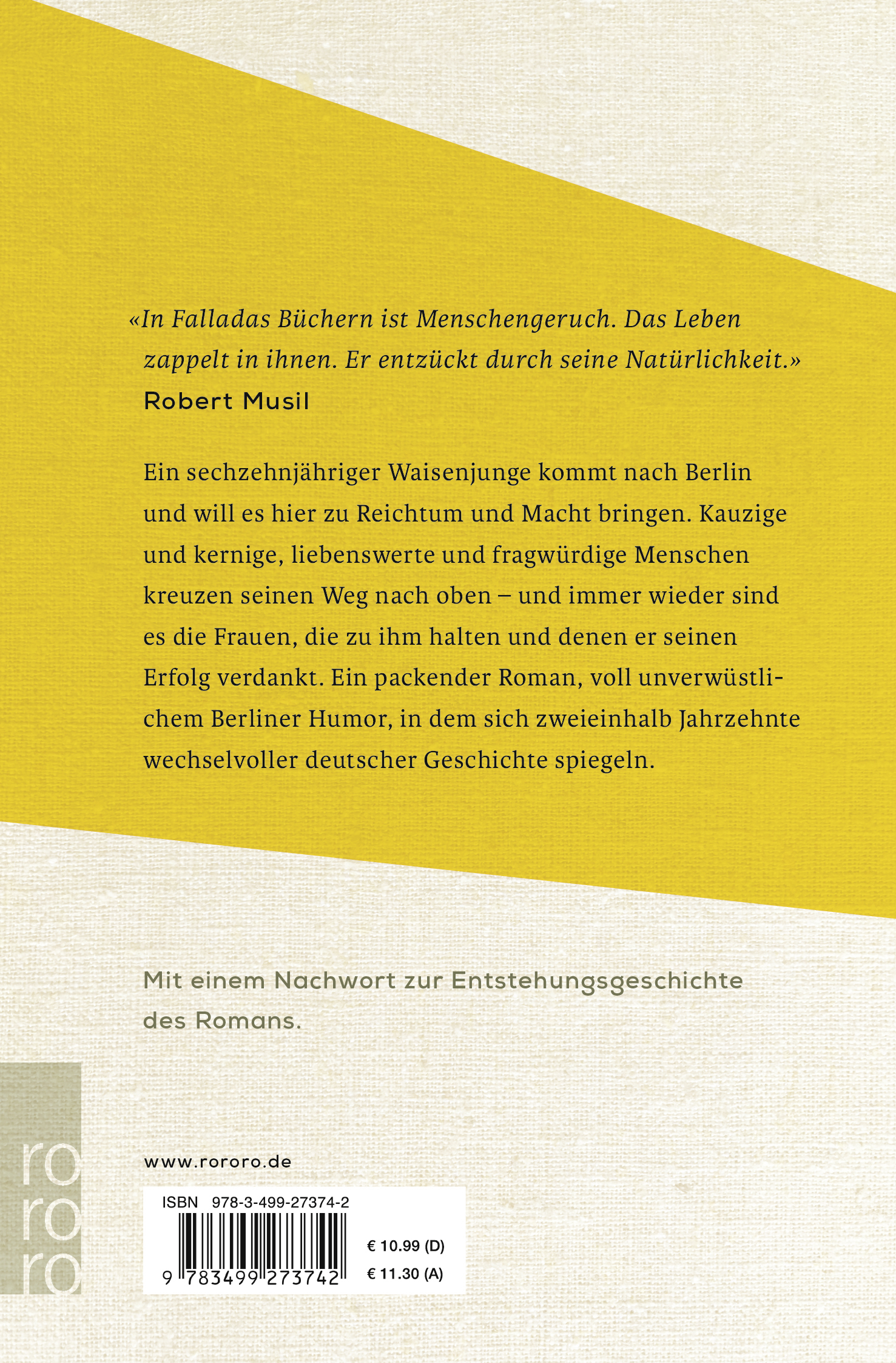 Ein Kaleidoskop aus zweieinhalb Jahrzehnten deutscher Geschichte, ein packender Roman über einen großen Lebenstraum und den Preis des Geldes. Karl Siebrecht ist eine der schönsten Figuren, die Fallada je erfand.