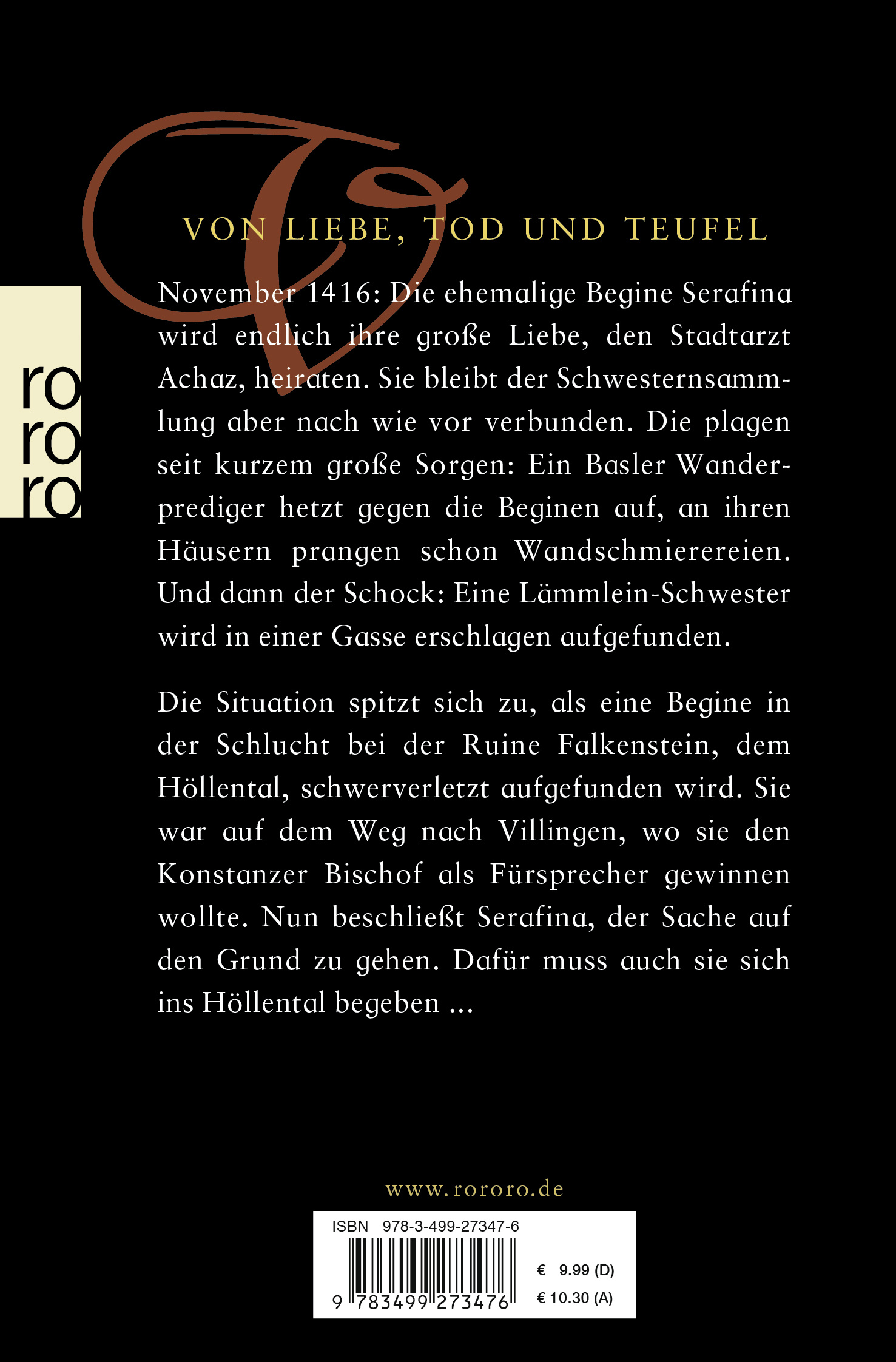 Die Situation spitzt sich zu, als Catharina, die Meisterin der Beginen, schwer verletzt von ihrer Reise nach Villingen zurückgebracht wird, wo sie den Bischof als Fürsprecher gewinnen wollte. Sie musste den Weg durch die enge Schlucht bei der Ruine Falkenstein nehmen, genannt Höllental, und wurde an einer Engstelle blutüberströmt vorgefunden. Nun beschließt Serafina, selbst nach Konstanz aufzubrechen. Dafür muss auch sie das Höllental passieren...