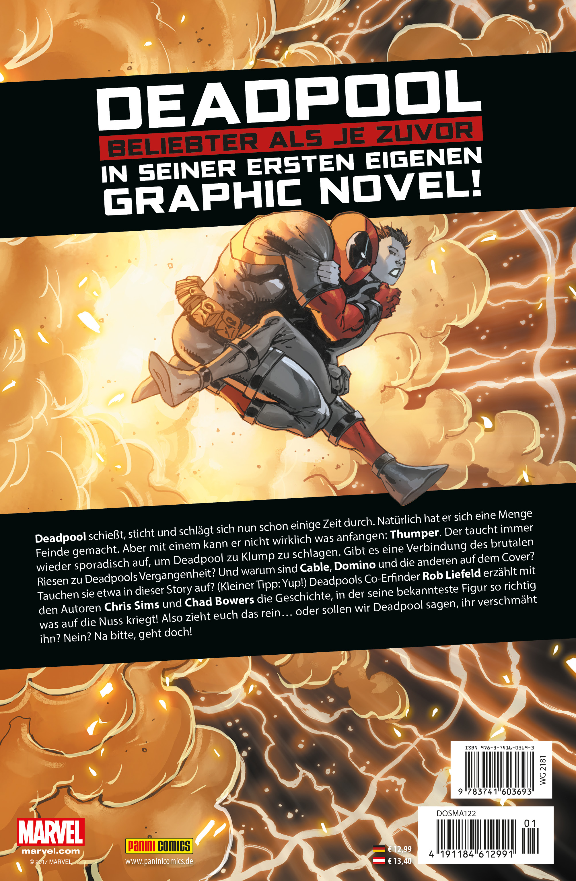Aus den New Mutants die X-Force zu schmieden, war nur der Anfang für Rob Liefeld, einen der Urväter der Comic-Revolution der Neunziger. Nachdem er Cable und Deadpool eingeführt hatte, ging er ein noch größeres Projekt an: Der Schöpfer von Youngblood wurde der Gründer von Image Comics. 1996 war er dann beteiligt an Marvels umstrittenem Titel HEROES REBORN: DIE WIEDERGEBURT DER HELDEN. Es folgte eine Zusammenarbeit mit Alan Moore bei der Neuausrichtung einiger Image-Figuren, woraufhin er mit Fabian Nicieza eine X-Force-Miniserie schuf. Danach kamen er und Autor Jeph Loeb mit Onslaught Reborn auf HEROES REBORN zurück. Jetzt hat er sich mit der vorliegenden Graphic Novel wieder seiner berühmtesten Schöpfung Deadpool gewidmet. Chris Sims ist ein Autor, der in North Carolina lebt. Zusammen mit Chad Bowers hat er X-Men ’92 und Down Set Fight geschaffen. Auf seine Kappe gehen auch Dracula the Unconquered und Radical Guardian Skater X. Seine Lieblingsfarbe ist blau. Chad Bowers ist ein Comic-Autor aus South Carolina. Zusammen mit Chris Sims hat er die beliebte Serie X-Men ‘92, Guardians of the Galaxy: Monsters Unleashed und Civil War II: Choosing Sides geschrieben. Er hat schon für Oni Press, Dynamite Entertainment und die BOOM! Studios gearbeitet. Zurzeit schreibt er Youngblood für Image Comics. Romulo Fajardo Jr. ist ein philippinischer Kolorist. Seit mehr als zehn Jahren arbeitet er für Marvel, DC, Valiant und IDW. Er hat beliebte Serien mit Batman, Wonder Woman, Captain America, Transformers, G.I. Joe und vielen anderen Helden koloriert.