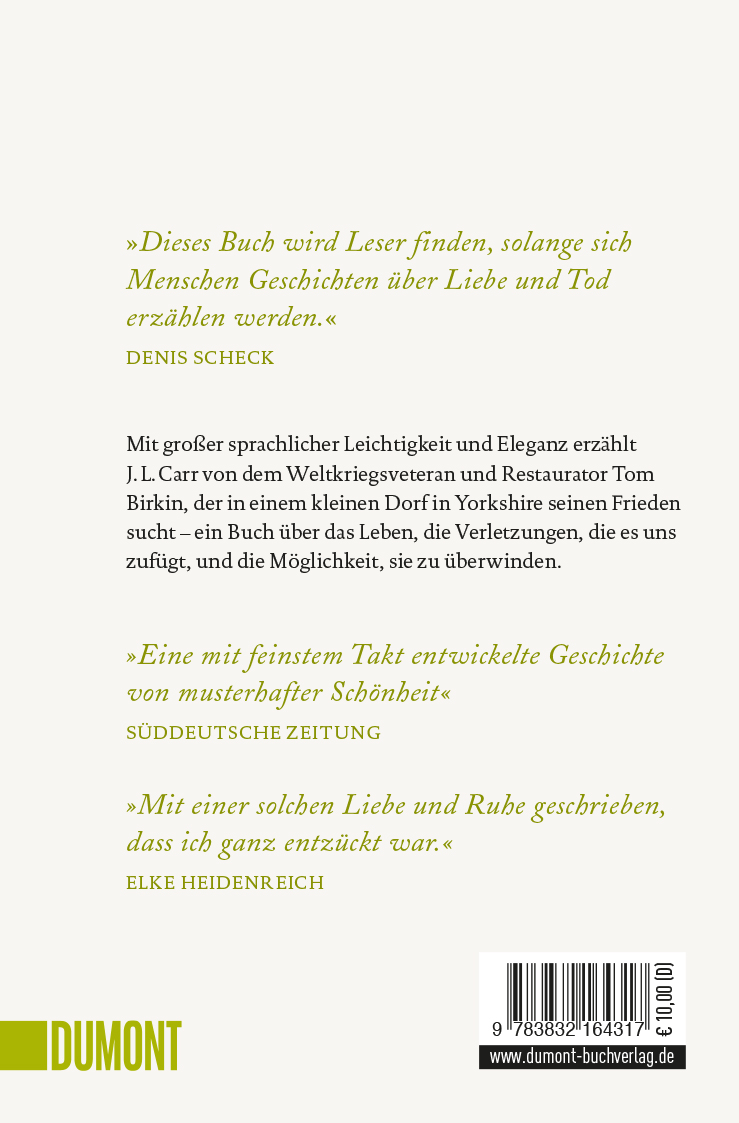 »J. L. Carr [...] schenkt uns gleichzeitig eine traumschöne Momentaufnahme englischen Landlebens jenseits von Downton-Abbey-Putzigkeit.«
