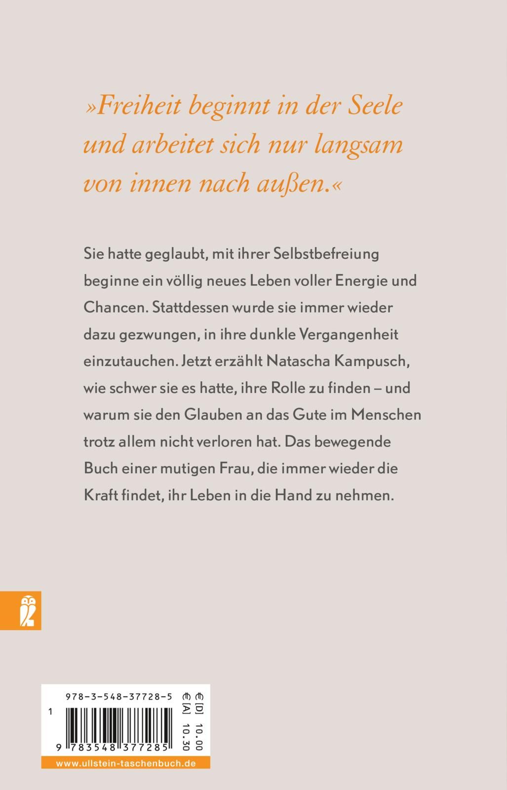 Sie hatte geglaubt, mit ihrer Selbstbefreiung beginne ein völlig neues Leben voller Energie und Chancen. Stattdessen wurde sie immer wieder dazu gezwungen, in ihre dunkle Vergangenheit einzutauchen. Jetzt erzählt Natascha Kampusch, wie schwer sie es hatte, ihre Rolle zu finden - und warum sie den Glauben an das Gute im Menschen trotz allem nicht verloren hat. Das bewegende Buch einer mutigen Frau, die immer wieder die Kraft findet, ihr Leben in die Hand zu nehmen.