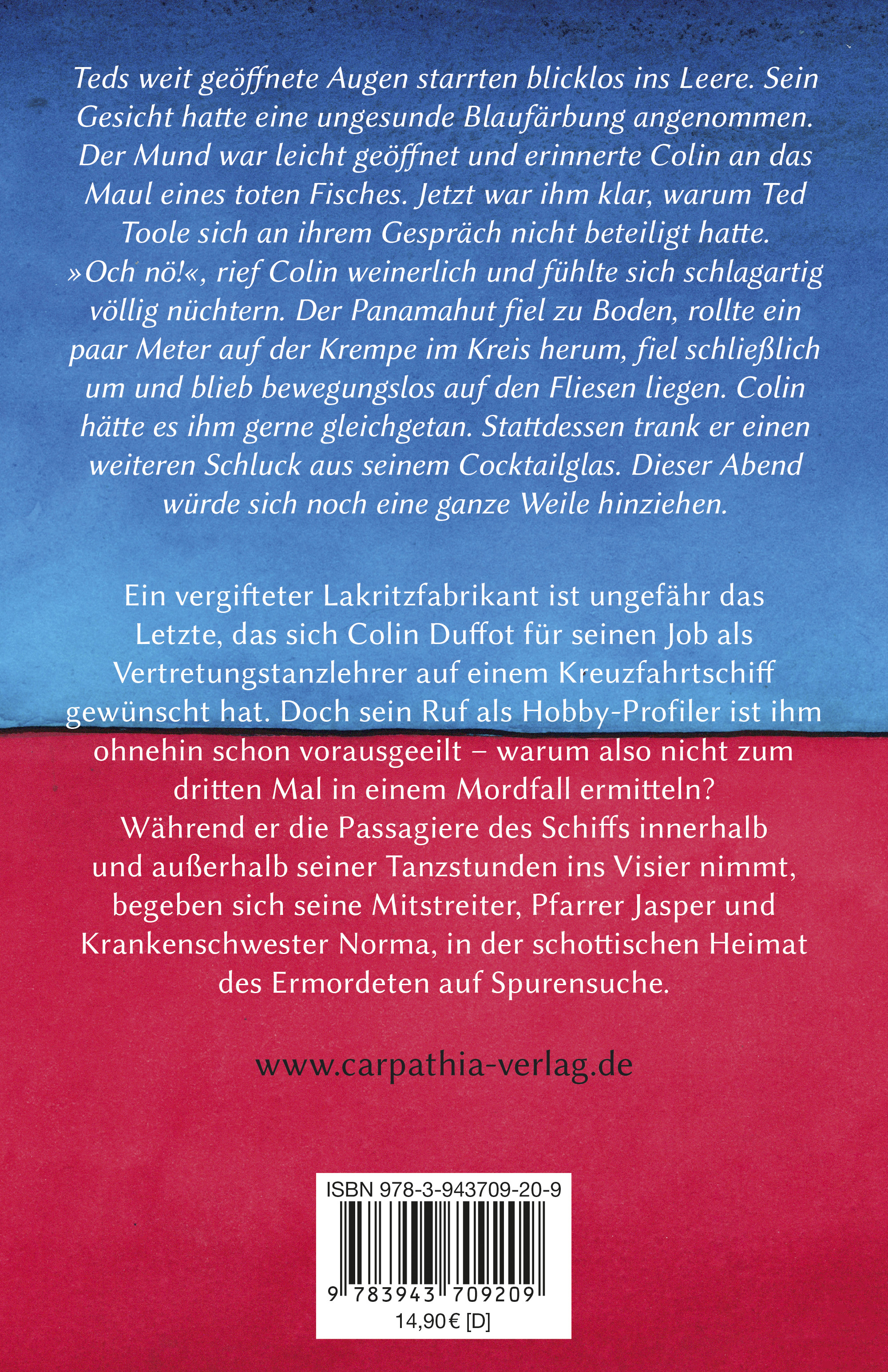 Ein vergifteter Lakritzfabrikant ist ungefähr das Letzte, das sich Colin Duffot für seinen Job als Vertretungstanzlehrer auf einem Kreuzfahrtschiff gewünscht hat. Doch sein Ruf als Hobby-Profiler ist ihm ohnehin schon vorausgeeilt – warum also nicht zum dritten Mal in einem Mordfall ermitteln?