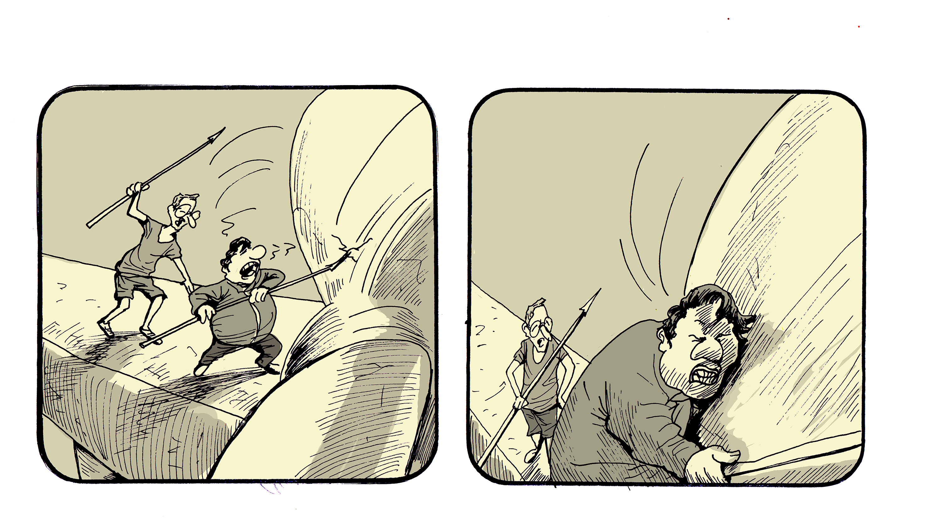 Eines Tages gibt es keine Duschköpfe mehr zu kaufen. Aus diesem Grund gelingt es einem einsamem Mann, seine Schüchternheit zu überwinden und seinen Nachbarn anzusprechen. Eine seltsame Freundschaft entsteht: Die beiden Männer zerstören alles, was sie umgibt, um es dann in unsinnig aufwendigen Konstruktionen gemeinsam wieder aufzubauen. – Eine feinfühlige Parabel über den Mangel und wie auf seinem fruchtbaren Boden menschliche Nähe gedeiht.