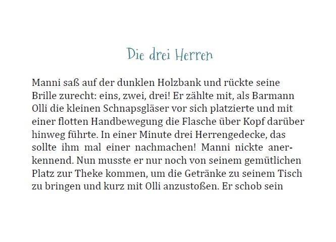 Die Geschichte: Manni und James läuten jeden Freitag mit Geige und Akkordeon das Wochenende in Ollis Kneipe ein. Während sie musizieren, gerät vor der Küste ein Boot in Not. Doch Seebär Otto kann gerade noch bei ihnen festmachen.