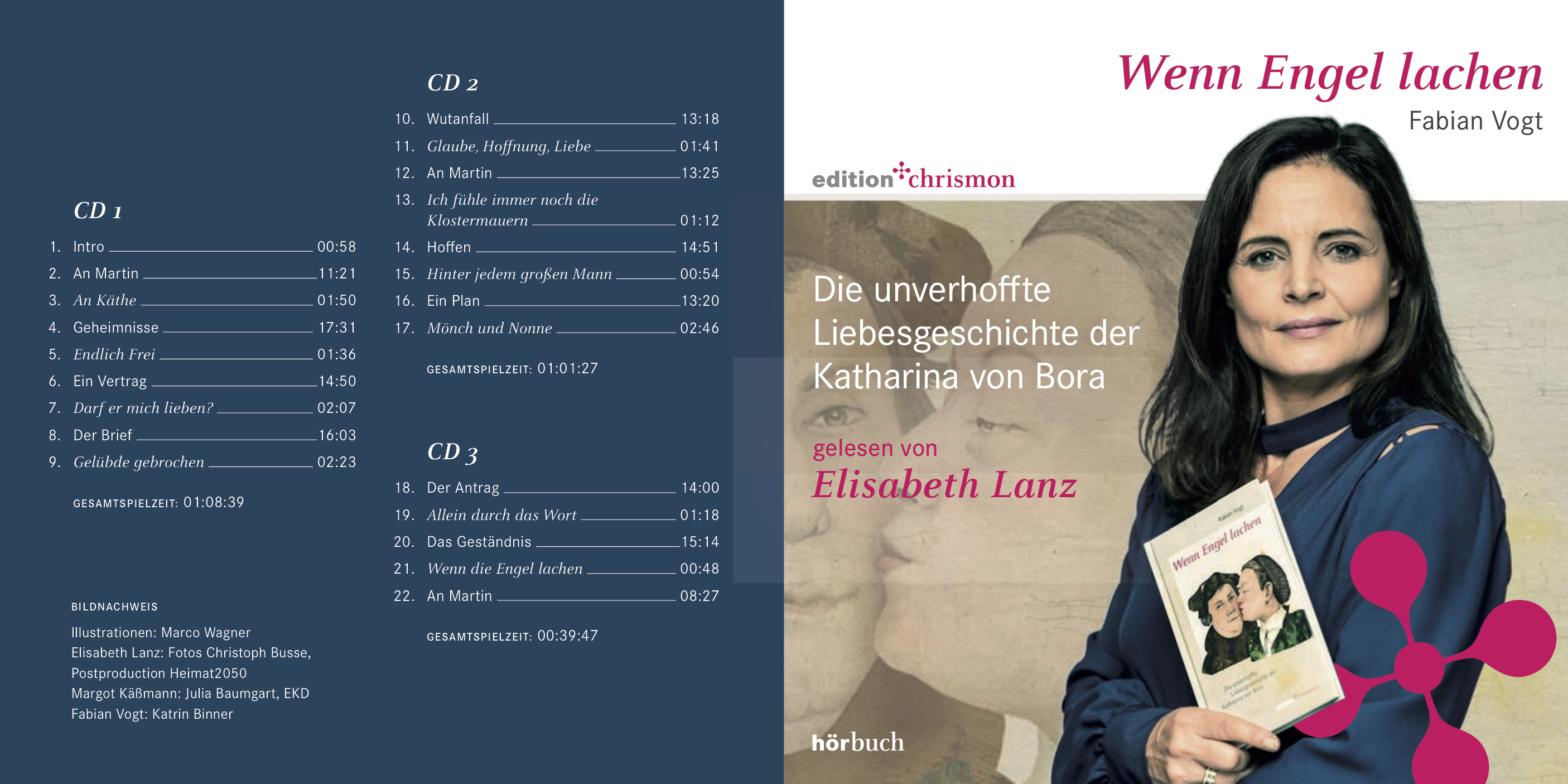 Für Elisabeth Lanz, die bekannte Fernsehschauspielerin, gibt es keine Grenzen. Sie liebt schauspielerische Herausforderungen. Aufgewachsen in Österreich, feierte sie als Schauspielerin erste Erfolge am Wiener Burgtheater, am Theater in der Josefstadt und anlässlich zahlreicher Gastspiele. Erste TV-Produzenten und namhafte Regisseure aus dem Kinobereich wurden auf Elisabeth Lanz aufmerksam. Der Kinofilm „Die Spur im Schnee“ von Robert Narholz gewinnt, mit Elisabeth Lanz in der Hauptrolle, als bester fremdsprachiger Beitrag beim Garden State Film Festival in New Jersey. In der ARD kann man sie als Dr. Mertens im Hauptabendprogramm sehen oder auch in zwei Inszenierungen von Dieter Wedel bei den Bad Hersfelder Festspielen 2017. Die Bühnenarbeit in „Hexenjagd“ sowie „Luther – Der Anschlag“ hat auch den emotionalen Auslöser für dieses Hörbuch gegeben. In der Vorbereitung auf ihre Rolle, hat sich Elisabeth Lanz detailliert mit der Figur der Katharina von Bora befasst und war beeindruckt von dieser selbstbewussten Frau, die für Martin Luther eine der wichtigsten Stützen gewesen ist. Mit ihrer schauspielerischen Erfahrung führt uns Elisabeth Lanz durch die Lebensreise zweier Menschen, die sie zu einem faszinierendem Hörerlebnis werden lässt.