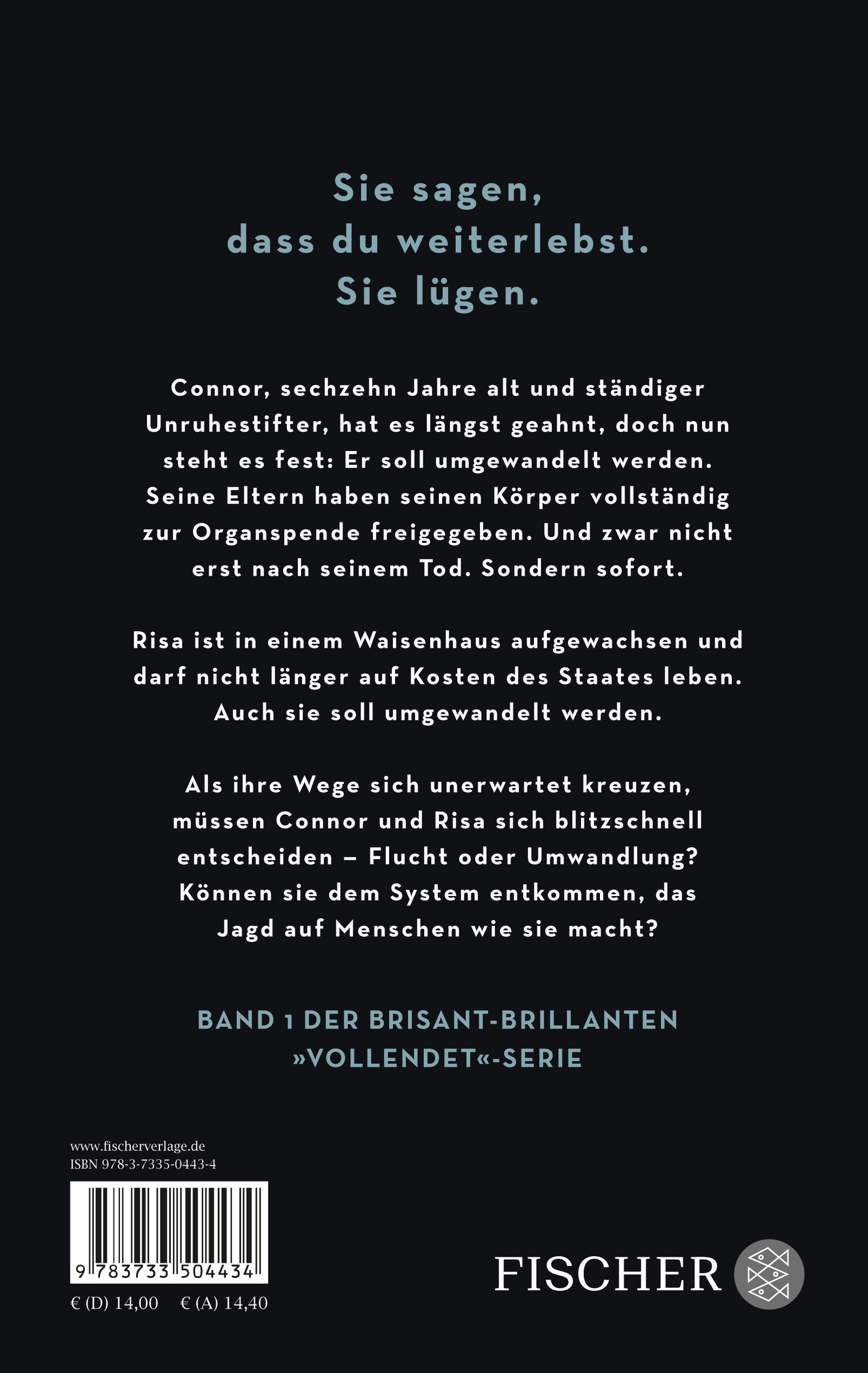 Connor, 16 Jahre alt und ständiger Unruhestifter, hat es längst geahnt, doch nun steht es fest: Er soll umgewandelt werden. Seine Eltern haben seinen Körper vollständig zur Organspende freigegeben. Und zwar nicht erst nach seinem Tod. Sondern sofort.