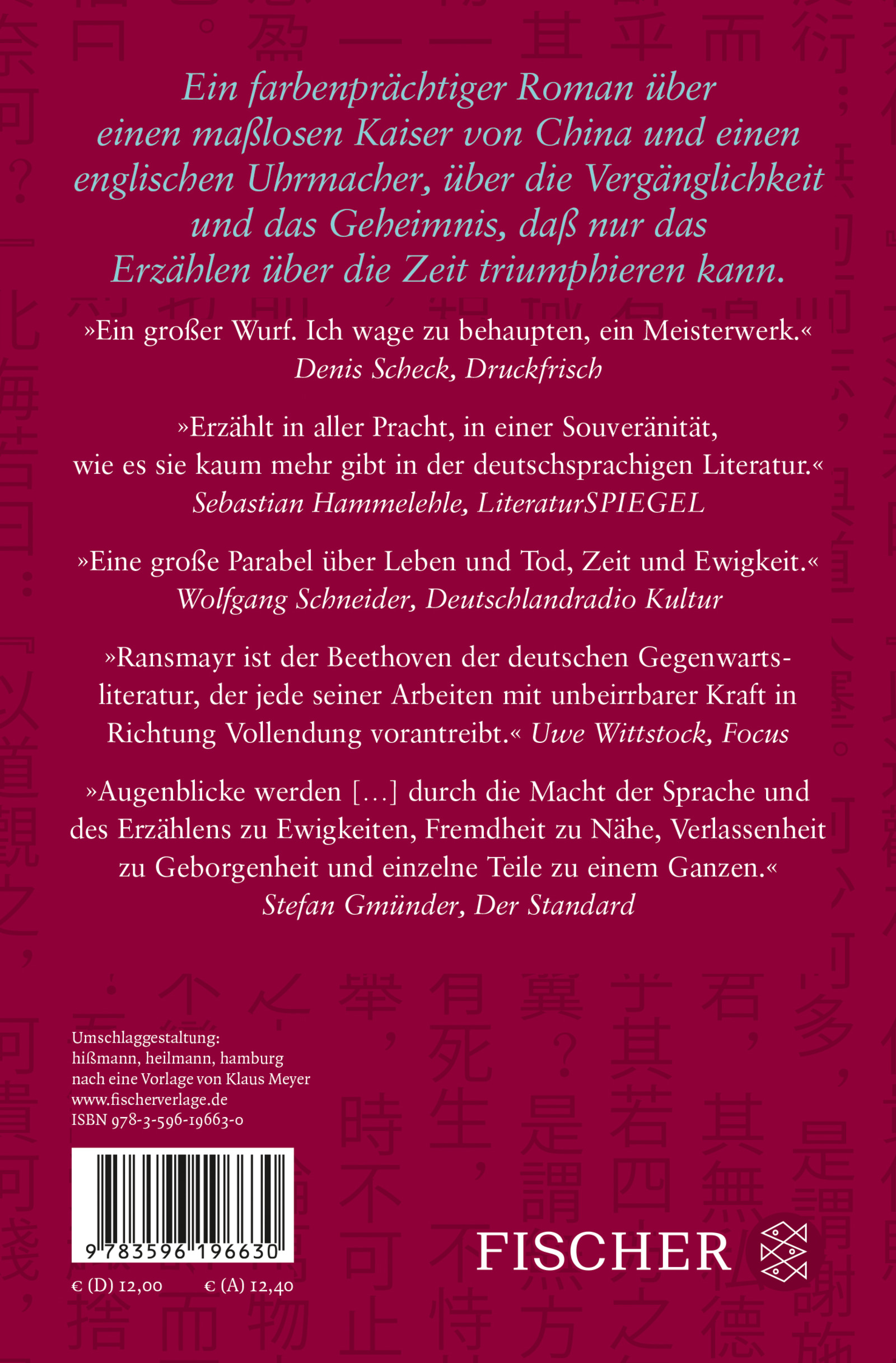 Ein farbenprächtiger Roman über einen maßlosen Kaiser von China und einen englischen Uhrmacher, über die Vergänglichkeit und das Geheimnis, dass nur das Erzählen über die Zeit triumphieren kann.