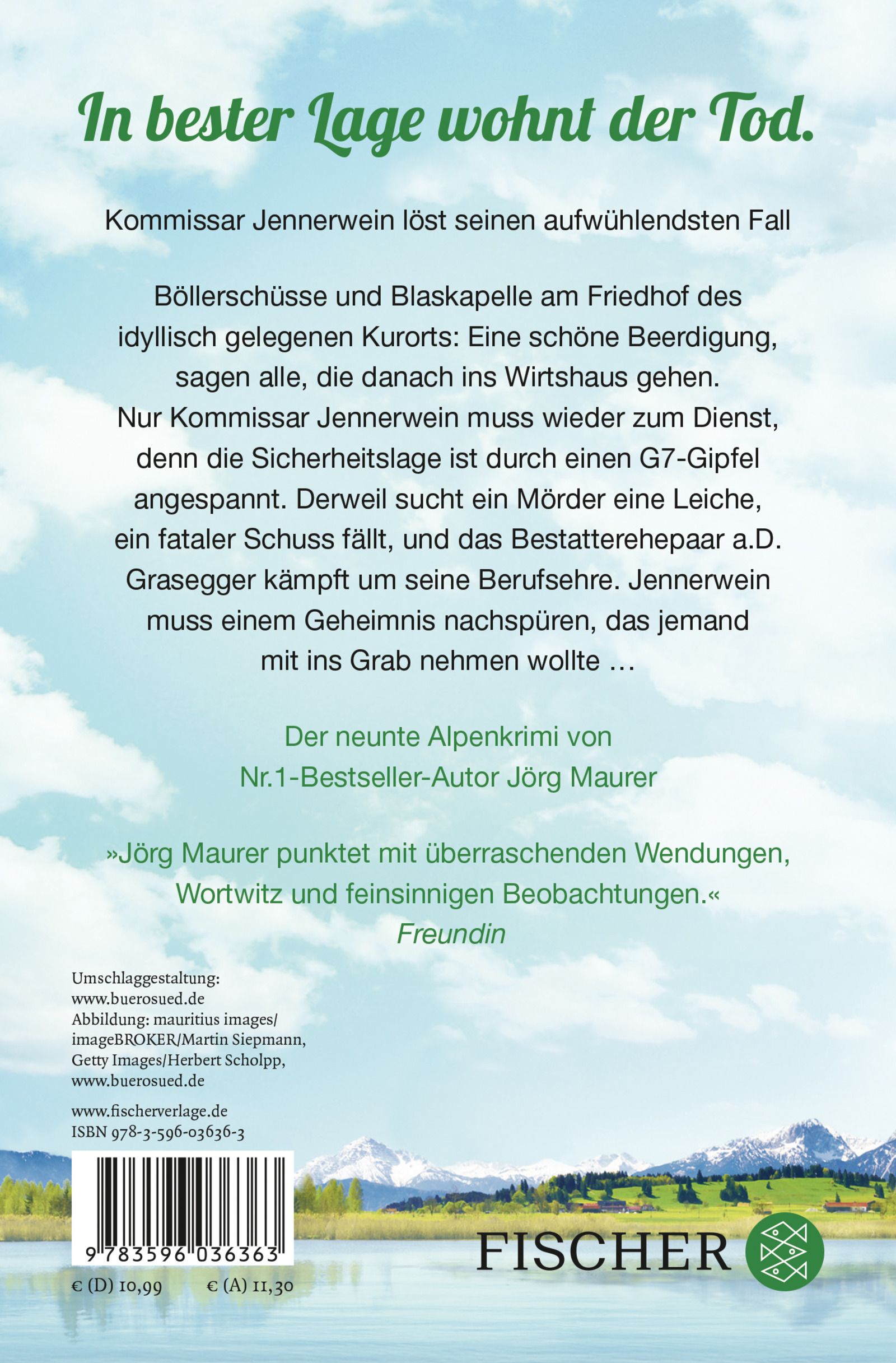 Böllerschüsse und Blaskapelle am Friedhof des idyllisch gelegenen Kurorts: Eine schöne Beerdigung, sagen alle, die danach ins Wirtshaus gehen. Nur schade, dass Kommissar Jennerwein gleich wieder weg musste, aber wegen dieses G7-Gipfels im Kurort sind alle Ordnungskräfte im Sondereinsatz. Dabei verliert gerade ein Mörder zwischen Polizeiabsperrungen und Anti-Gipfel-Demonstranten sein Opfer aus den Augen, ein schicksalhafter Schuss fällt, und das Bestatterehepaar a.D. Grasegger findet Verdächtiges auf dem Friedhof. Bei seinen Ermittlungen entdeckt Kommissar Jennerwein, dass nichts von Dauer ist - nicht einmal die Totenruhe...