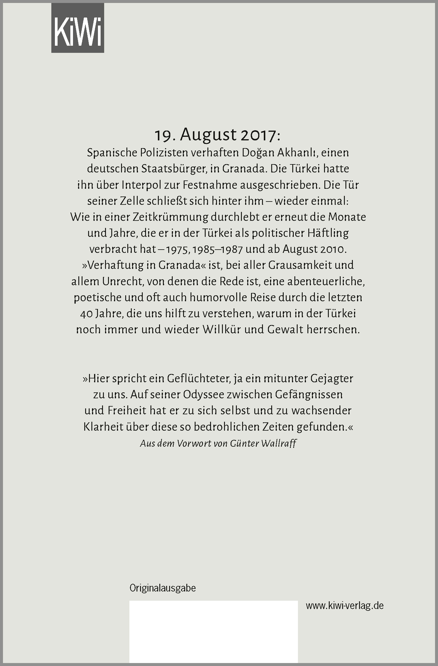 19. August 2017: Spanische Polizisten verhaften Dogan Akhanli, einen deutschen Staatsbürger, in Granada. Die Türkei hatte ihn über Interpol zur Festnahme ausgeschrieben. Die Tür seiner Zelle schließt sich hinter ihm - wieder einmal: Wie in einer Zeitkrümmung durchlebt er erneut die Monate und Jahre, die er in der Türkei als politischer Häftling verbracht hat - 1975, 1985-1987 und ab August 2010. »Verhaftung in Granada« ist, bei aller Grausamkeit und allem Unrecht, von denen die Rede ist, eine abenteuerliche, poetische und oft auch humorvolle Reise durch die letzten 40 Jahre, die uns hilft zu verstehen, warum in der Türkei noch immer und wieder Willkür und Gewalt herrschen.