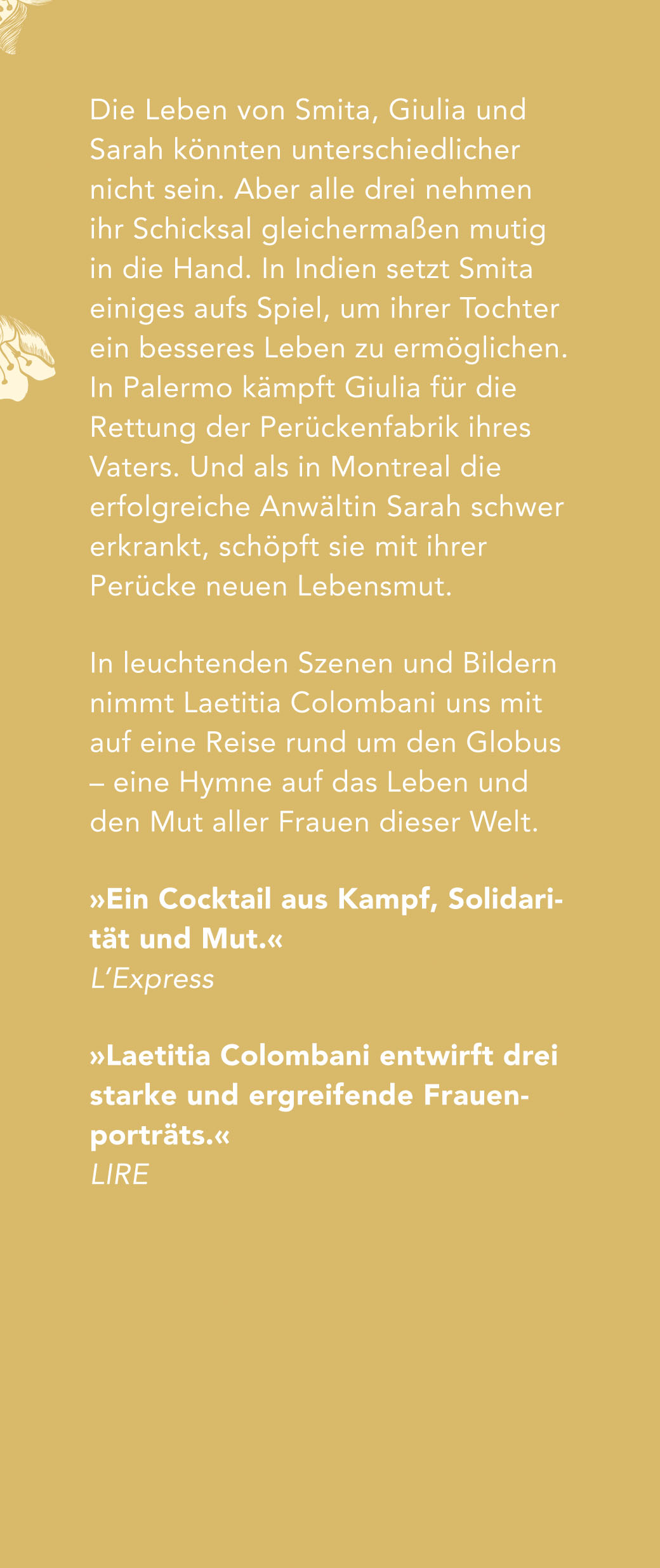 Ergreifend und kunstvoll flicht Laetitia Colombani aus den drei außergewöhnlichen Geschichten einen prachtvollen Zopf.