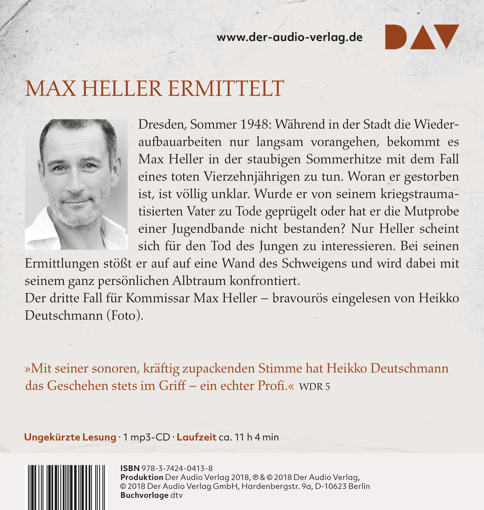 »Mit seiner sonoren, kräftig zupackenden Stimme hat Heikko Deutschmann das Geschehen stets im Griff - ein echter Profi.« WDR 5