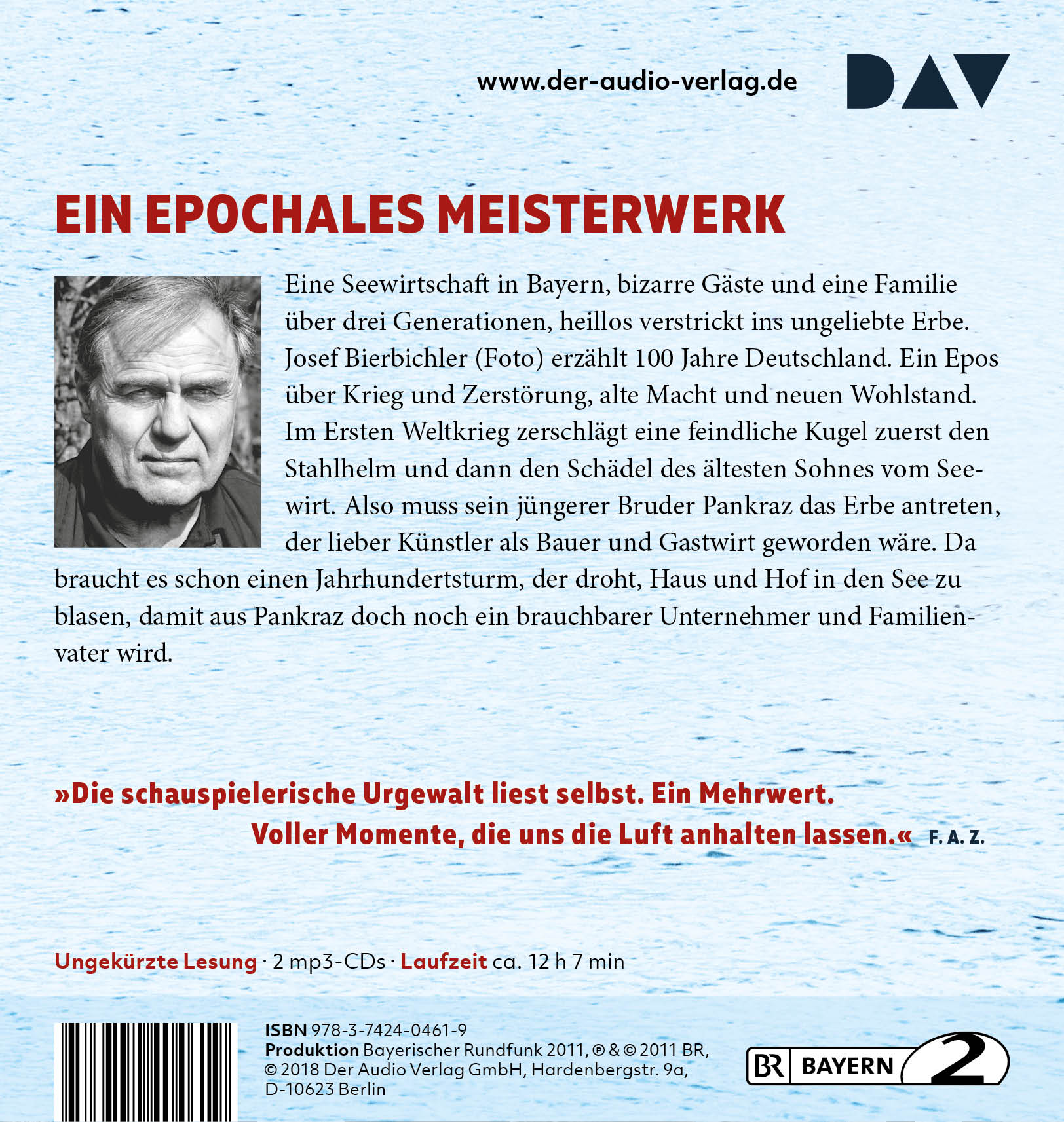 | Schlagworte | Bayern • Familienroman • Humor • Jahrhundertroman • Josef Bierbichler • Kino • Schauspieler • Starnberger See • Verbrechen • Zwei Männer im Anzug |
