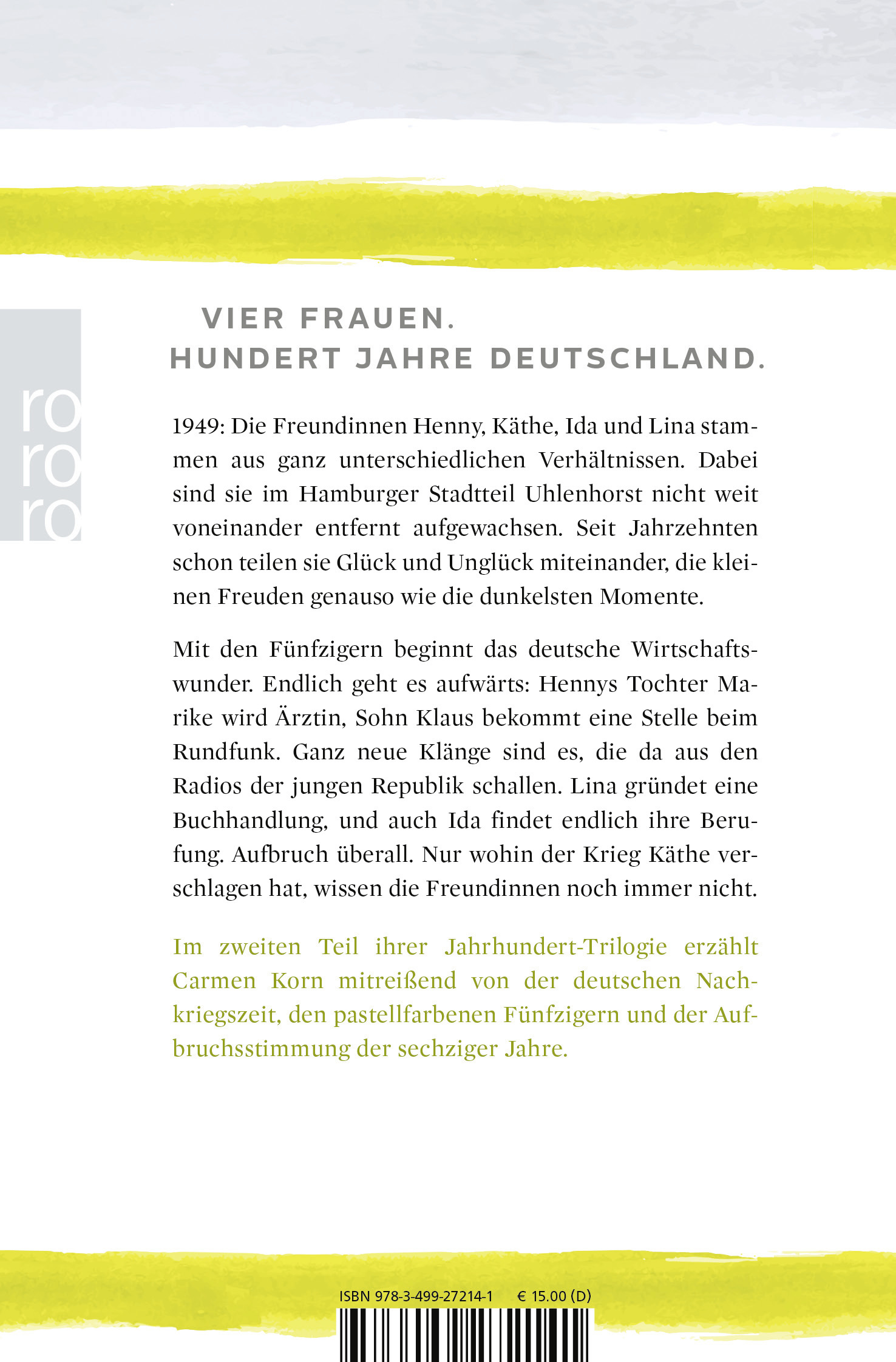 Im zweiten Teil ihrer Jahrhundert-Trilogie erzählt Carmen Korn mitreißend von der deutschen Nachkriegszeit, den pastellfarbenen Fünfzigern und der Aufbruchsstimmung der Sechzigerjahre.