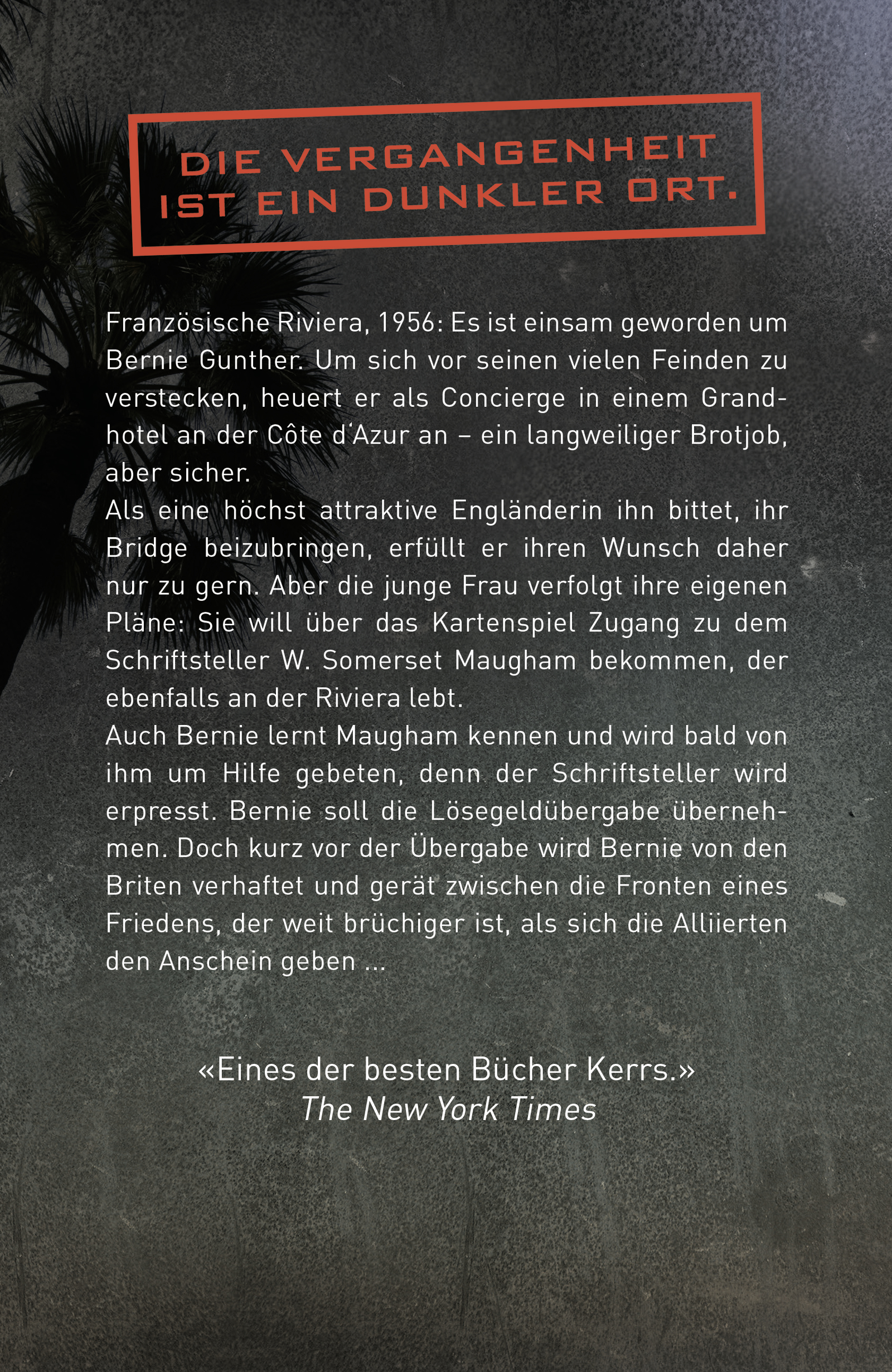 | Schlagworte | 50er Jahre • Agenten • Alliierte • Bernie Gunther • Cote d'Azur • Erpressung • Grandhotel • Kalter Krieg • Somerset Maugham • Spionage • Südfrankreich |