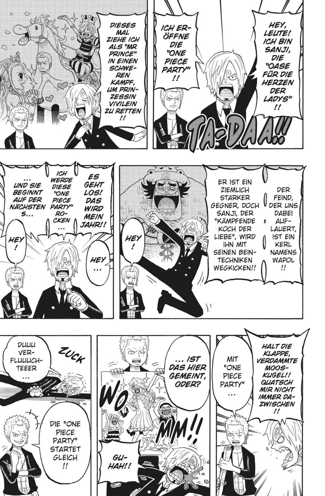 Willkommen bei der One Piece Party! In fünf kurzen und lustigen Kapiteln mit Gastauftritten beliebter Charaktere erleben die Strohhut-Piraten fantastische Abenteuer.