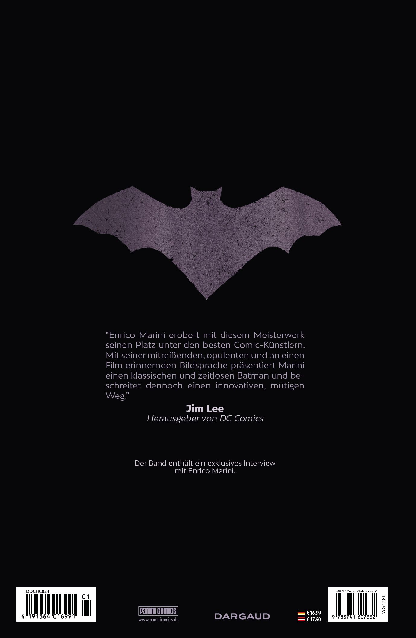 Ich arbeitete gerade an meiner Comic-Reihe Die Adler Roms, als plötzlich Batman an meine Tür klopfte. Na ja, eigentlich krachte er durch mein Fenster, so wie er es meistens tut, wenn er es eilig hat. Er sah zu mir herunter und sagte: “Enrico, ich möchte, dass du eine Geschichte über mich schreibst und zeichnest.“ Ich gebe zu, ich war etwas verwundert, und mein erster Gedanke war: Wer bezahlt das kaputte Fenster? “Lass mir fünf Minuten, um darüber nachzudenken“, erwiderte ich. Nach zwei Sekunden sagte ich: “Okay.“ Allerdings hatte ich noch ein paar Fragen. “Darf ich mir die Geschichte selber ausdenken und sie in meinem Stil zeichnen? Darf ich ein neues Batman-Kostüm entwerfen und ein neues Batmobil? Darf Catwoman in der Geschichte vorkommen (reiner Egoismus meinerseits)? Und Harley Quinn? Und der Joker?“ Batman nickte. “Unter einer Bedingung.“ “Welche?“, fragte ich. “Keine weißen Socken“, antwortete er. “Bitte?!“ “Zeichne mich nicht mit weißen Socken. Niemals“, forderte Batman. “Ich trage Schwarz.“ “Klar, kein Problem“, erwiderte ich (und dachte: “Meinetwegen.“). Aber ich stellte ihm noch eine Frage: “Wer bezahlt das kaputte Fenster?“ Doch Batman war schon verschwunden. Das macht er ständig. Ich schwöre, genau so ist es passiert. [...] Enrico Marini 25. August 2017