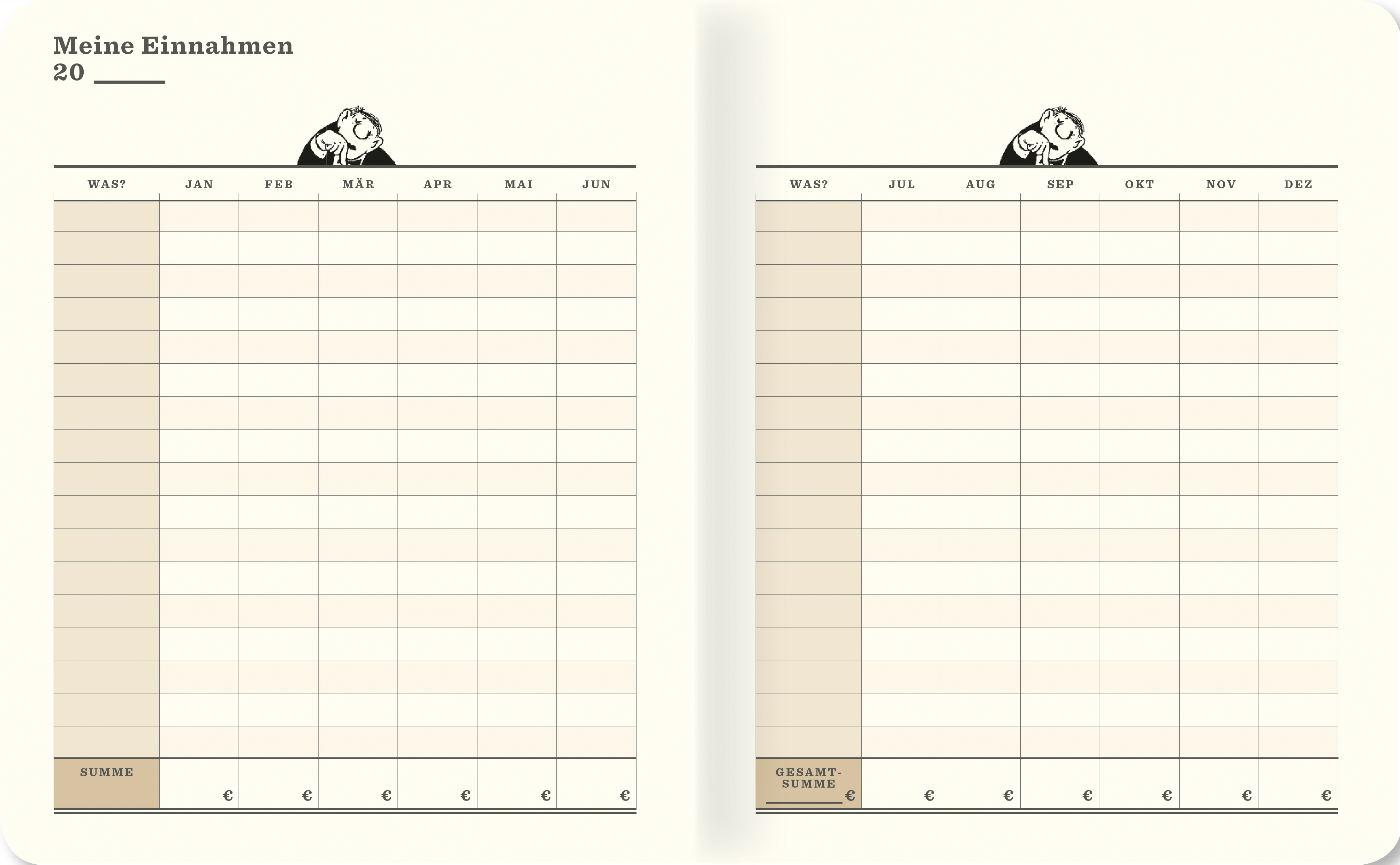 Nachdem feste Einnahmen und Ausgaben in die übersichtlichen Tabellen eingetragen wurde, haben Sie den Überblick über das Budget der veränderlichen Ausgaben. Nun können auf weiteren Tabellen Monat für Monat alle veränderlichen Ausgaben notiert werden.