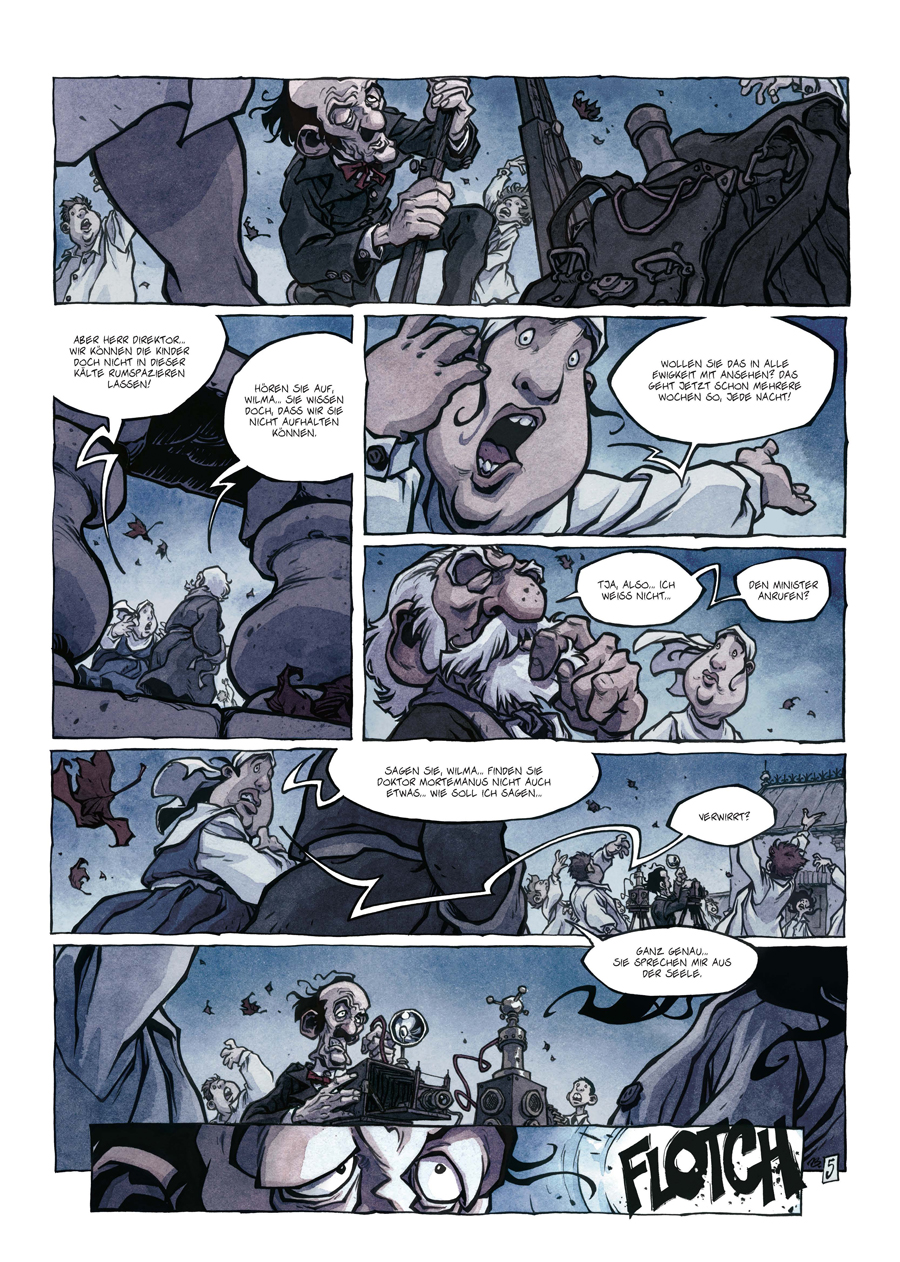 Ein einsames Waisenhaus mitten in einem uralten Wald wird Schauplatz unheimlicher Ereignisse. Jede Nacht um Punkt Mitternacht erheben sich die Kinder wie in Trance aus ihren Betten und erklimmen wie von einem fremden Willen gelenkt das Dach, um dort fremdartige Choräle anzustimmen. Das Personal des Waisenhauses ist mit seinem Latein und seinen Nerven am Ende, und so entsendet das »Öffentliche Ministerium für Privatangelegenheiten« zwei Ermittler, um der Sache auf den Grund zu gehen. Das Spezialgebiet des ungleichen Dous ist das Paranormale - zum Glück, denn bei ihren Untersuchungen stoßen sie auf eine mysteriöse Tragödie, die den riesigen Wald vor Jahrhunderten erschütterte... Besessene Kinder, blutende Bäume und höllenhafte Steampunk-Maschinen: »Das Konzil der Bäume« vereinigt alle Zutaten einer viktorianischen Horrorstory zu einem Comicerlebnis, das sowohl von seiner dichten Atmosphäre als auch den dynamischen Dialogen der Hauptcharaktere profitiert.