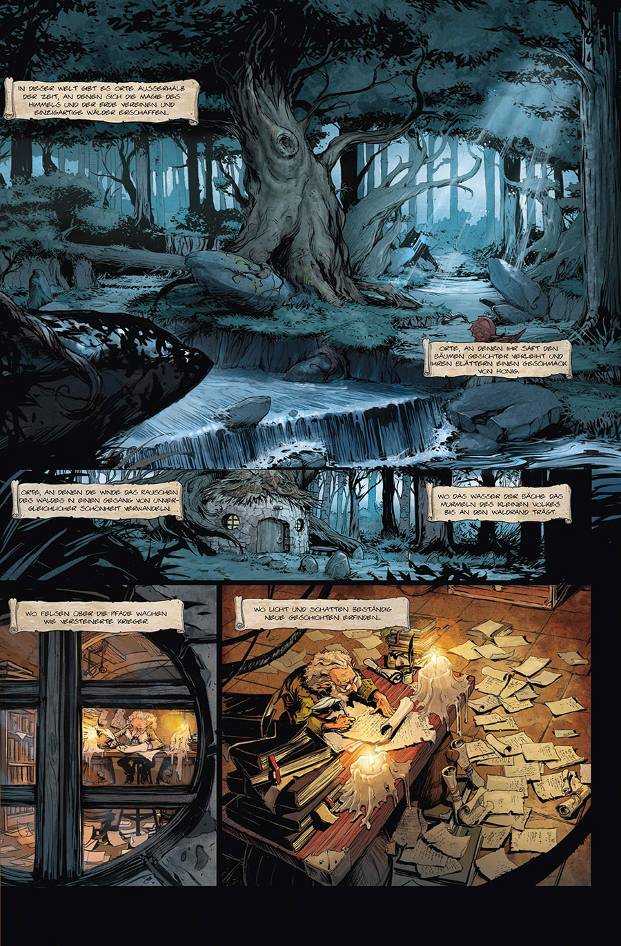 Brocéliande, ein mythischer Wald in der Bretagne, ist Schauplatz vieler Sagen rund um König Arthus und seine Tafelrunde. Außerdem ist er die Heimat einer Vielzahl märchenhafter Wesen, so auch des gelehrten Kobolds Orignace, der sich in einer misslichen Lage befindet: Zwei ungehobelte Korrigans sind in seine Baumhöhle eingedrungen und fordern, dass er eine Geschichte über sie schreibt; eine, in der ihnen -- vollkommen entgegen ihrer Natur -- heldenhafte Rollen zukommen. Orignace mangelt es verständlicherweise an Inspiration, und er sucht sie im Brocéliande, wo er den jungen Merlin beobachten kann, wie er der schönen Viviane den Hof macht. Durch eine List, in der ein weißer Hirsch eine zentrale Rolle spielt, will Merlin ihr näherkommen. Aber er hat die Rechnung ohne drei Jäger gemacht, die im Wald nach Beute suchen... Ein modernes Comic-Märchen voller Magie, Feen und Kobolden, in dem bekannte Charaktere der Arthussagen neue Rollen einnehmen. »Brocéliande« gibt dem Sehnsuchtsort Wald einen mythologischen Anstrich, gespickt mit reichlich Action und Humor und präsentiert in zauberhaften Zeichnungen.