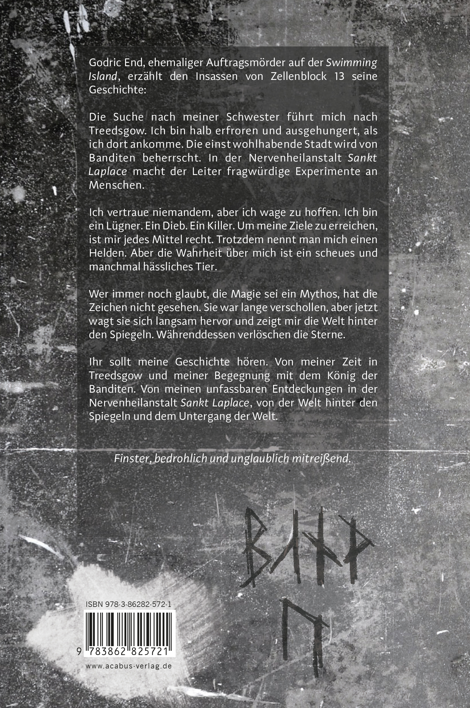 Ihr sollt meine Geschichte hören. Von meiner Zeit in Treedsgow und meiner ersten Begegnung mit dem König der Banditen. Von meinen unfassbaren Entdeckungen in der Nervenheilanstalt Sankt Laplace, von der Welt hinter den Spiegeln und dem Untergang der Welt.
