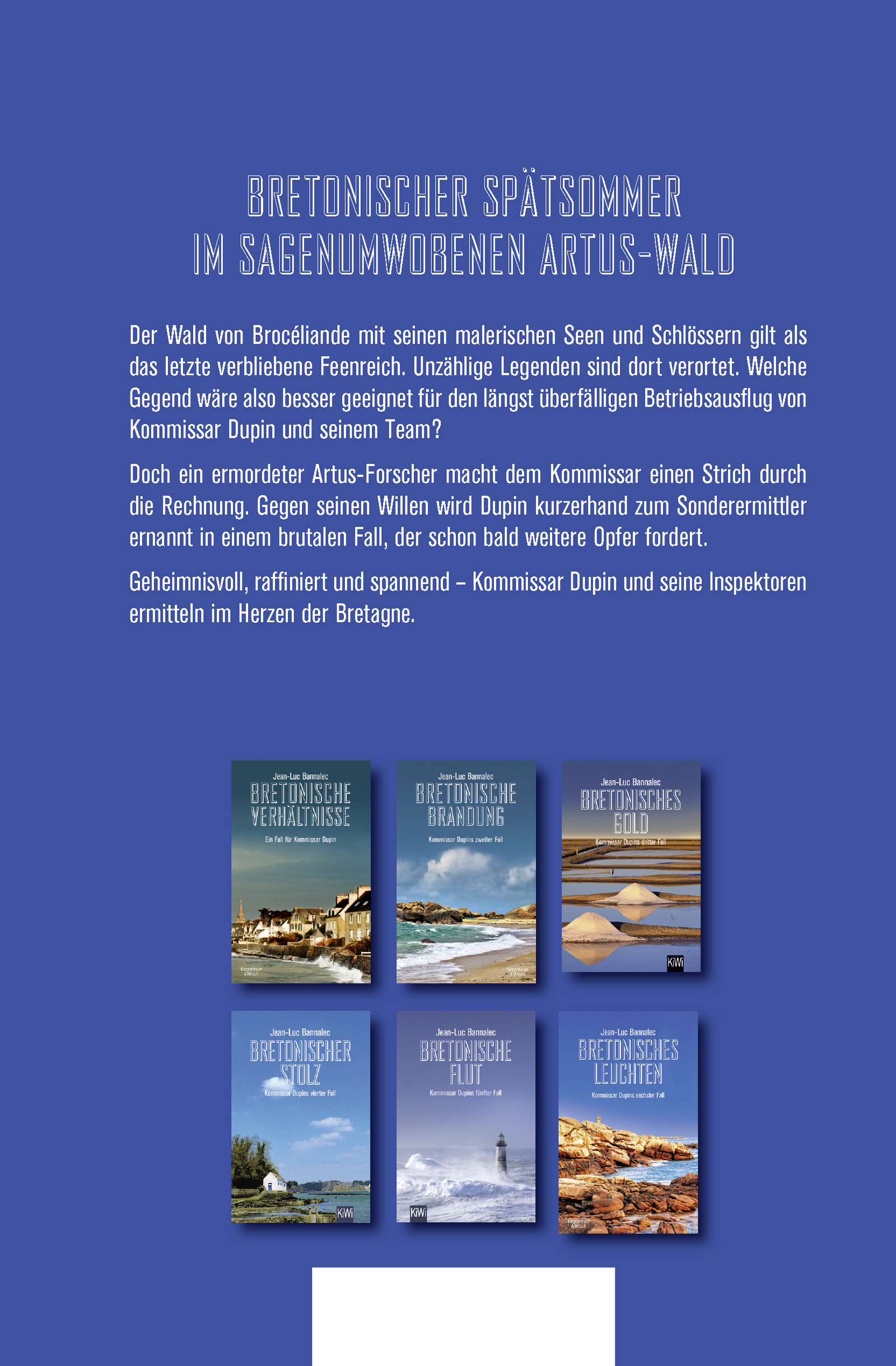 Welche Gegend wäre geeigneter für den längst überfälligen Betriebsausflug von Kommissar Dupin und seinem Team in diesen bretonischen Spätsommertagen? Doch ein ermordeter Artus-Forscher macht dem Kommissar einen Strich durch die Rechnung. Gegen seinen Willen wird Dupin kurzerhand zum Sonderermittler ernannt in einem brutalen Fall, der schon bald weitere Opfer fordert.