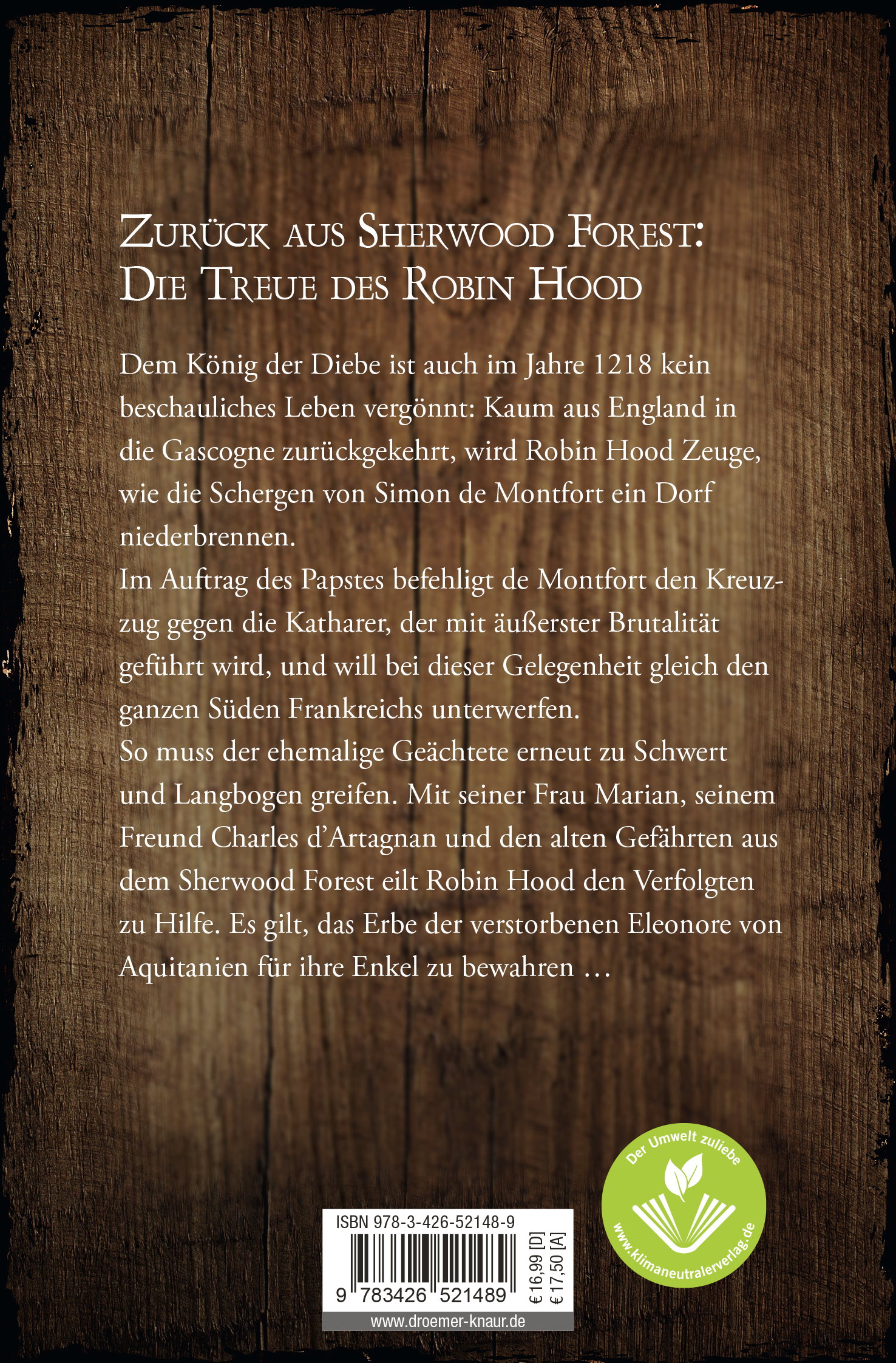 Dem ehemaligen König der Diebe ist auch im Jahre 1218 kein beschauliches Leben vergönnt: Kaum aus England zurückgekehrt auf sein Landgut in der Gascogne, wird Robin Hood Zeuge, wie die Schergen Simon de Montforts ein Dorf niederbrennen. Im Auftrag des Papstes befehligt de Montfort den Kreuzzug gegen die Katharer, der mit äußerster Brutalität geführt wird - und mehr als ein politisches Ziel verfolgt. Gemeinsam mit seiner Frau Marian, seinem Freund Charles d'Artagnan und den alten Gefährten aus dem Sherwood Forest stellt Robin Hood sich erneut auf die Seite der Verfolgten.