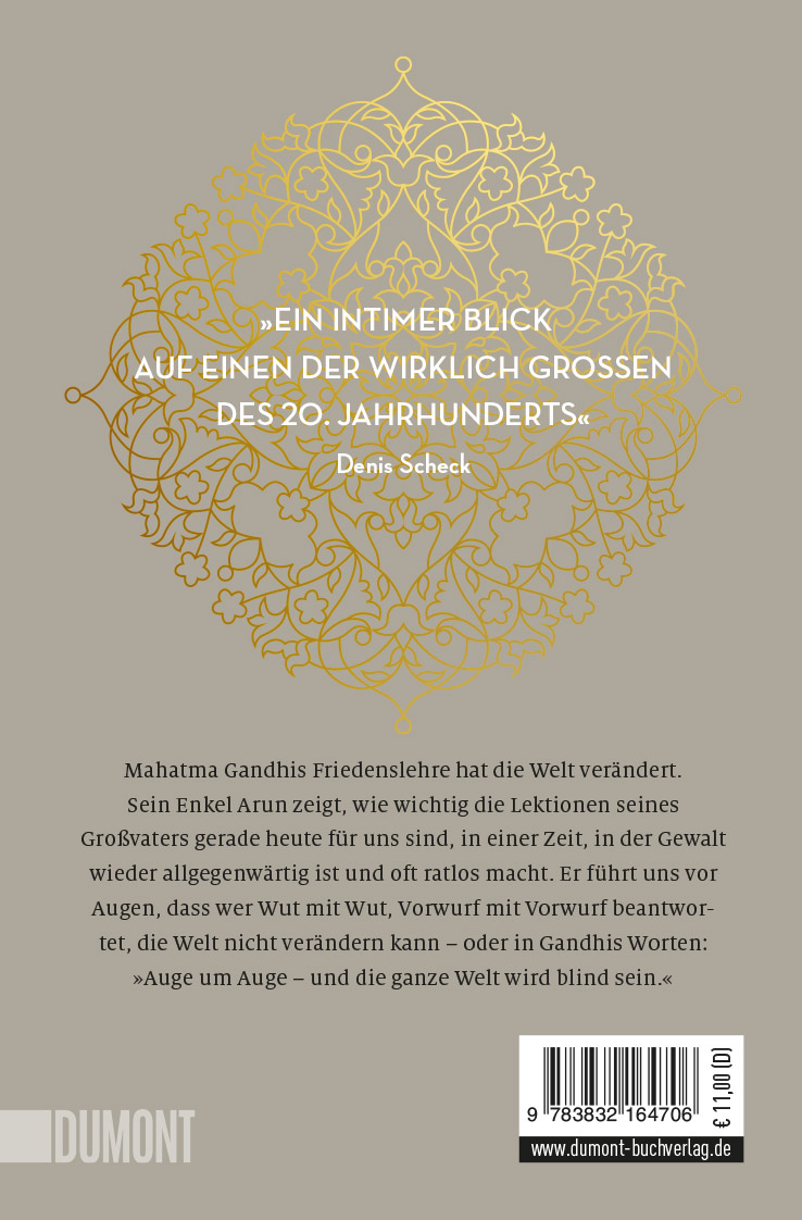 »Auch jenseits der achtzig verfolgt [Arun Gandhi] die Mission, das Erbe seines Großvaters weiterzutragen: Frieden, Freiheit, gewaltloser Widerstand gegen das Unrecht dieser Welt.«
