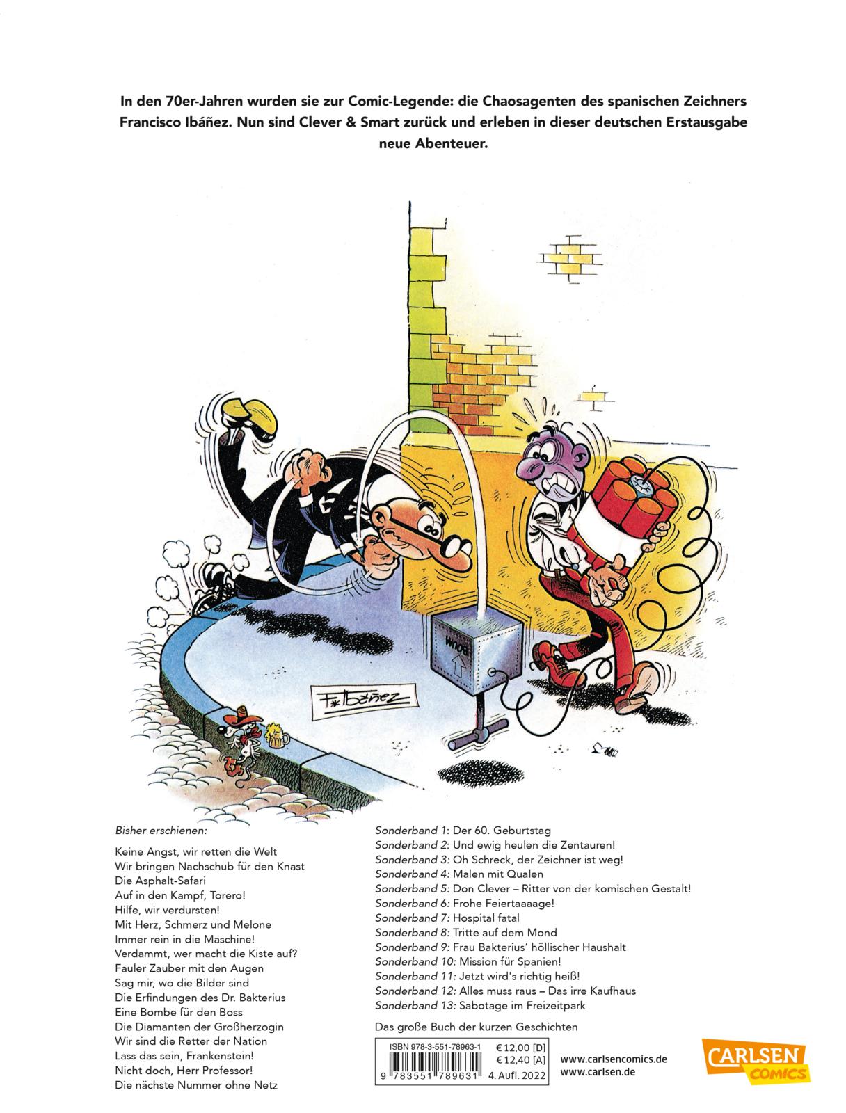 Sie sind die Gagahelden aus den 1970er-Jahren: Clever & Smart. Die Slapstick-Abenteuer der beiden Geheimagenten waren der Comic-Renner am Kiosk. Nun sind die Abenteuer des spanischen Zeichners Ibanez wieder da. Carlsen legt die klassischen Abenteuer wieder auf.