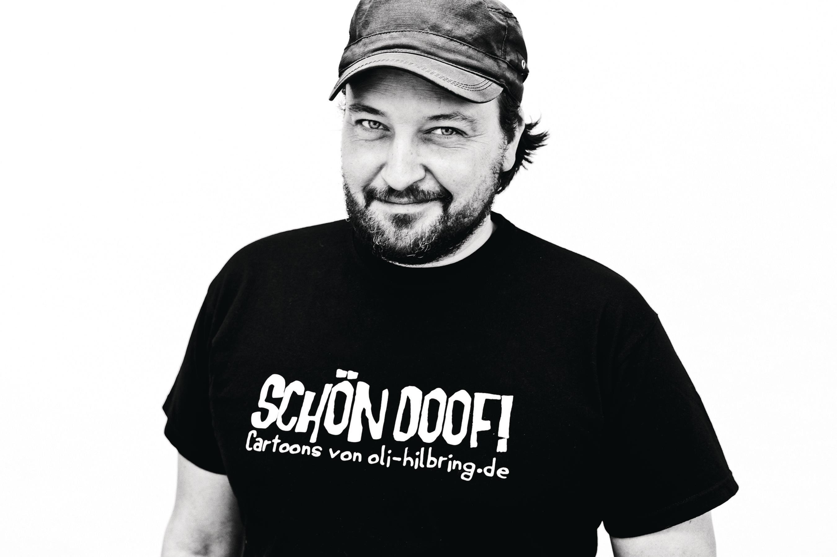 Oliver Hilbring, zeichnet seit 2009 seine unverkennbaren Figuren mit den verdammt großen Nasen. Flache Kalauer, fiese Bilder und Fußball-Cartoons sind dabei das Spielfeld des Bochumer Zeichners. Seine Cartoons erscheinen regelmäßig im RevierSport, im Oxmox Stadtmagazin Hamburg und im Trailer Magazin. In Netz ist der flache Freitag bei seinen über 125.000 Facebook-Fans mittlerweile der Weckruf zum Wochenende. Der bekennende Schalke-Fan und VfL Bochum Sympathisant ist Mitglied des offiziellen AC/DC Fanclub und lebt mit seiner Familie und einem faulen Hund in Bochum. http://www.oli-hilbring.de/