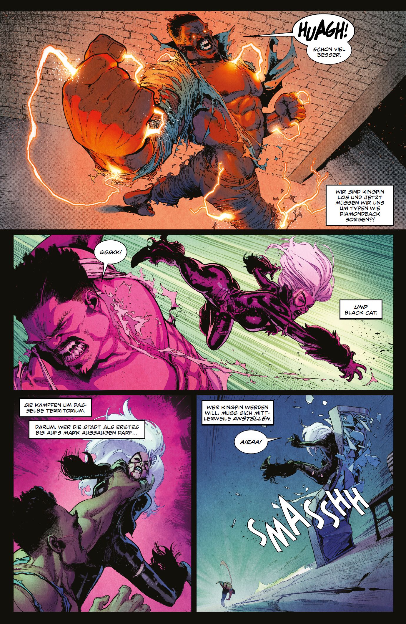 EINLEITUNG von Christian Endres Früher war Jessica Jones eine Superheldin, heute ist sie eine taffe Privatdetektivin. Ihr kugelsicherer Ehemann Luke Cage führte einst die New Avengers und die Thunderbolts an. Sein bester Freund Danny Rand ist nicht nur der Erbe eines Firmenimperiums, sondern auch der Kung-Fu-Meister Iron Fist. Und wann immer der blinde Matt Murdock nicht als Staatsanwalt im Gerichtssaal für Gerechtigkeit eintritt, tut er es als draufgängerischer Schutzteufel Daredevil. Gemeinsam kämpfen diese vier New Yorker Helden als Defenders für ihre Stadt. Die wurde im ersten Comic-Band von Bestseller-Autor Brian Michael Bendis und Top-Zeichner David Marquez von einer neuen Droge überschwemmt, die ungeahnte Kräfte verleiht. Dahinter steckt der Schurke Willis Stryker alias Diamondback, der nicht so tot ist, wie Luke und alle anderen lange Zeit dachten. Nachdem der feiste Unternehmer Wilson Fisk seinen Posten als Kingpin und König der New Yorker Unterwelt geräumt hat, um sich als angeblich ehrlich gewordener Bürgermeister der Metropole neu zu erfinden, will Diamondback die Kontrolle über das Verbrechen in der Stadt. Doch auch Black Cat und ihre rechte Hand Hammerhead sind scharf auf die Spitzenposition unter den Gangstern, weshalb Diamondback und Black Cat nur darauf warten, einander den Garaus zu machen. Zumal der brutale Punisher ebenfalls bereits in den Krieg um die Krone der Unterwelt eingriff und wegen seiner Methoden mit den Defenders aneinandergeriet. Brian Michael Bendis ist ein echter Krimi-Experte, was man seinen Marvel-Comics immer wieder anmerkt. Schon während seiner Zeit als langjähriger AVENGERS-Stammautor legte Bendis eine Vorliebe für Kriminelle und Superschurken an den Tag und machte den Schmalspurganoven Parker Robbins alias Hood, der dämonische Artefakte nutzt, zum machtbesessenen Verbrecherkönig und Bandenchef. Dieser Band präsentiert nun das Finale von Bendis’ Saga über die Netflix-Helden – und gehört zu den letzten Marvel-Comics, die er vor seinem Wechsel zu DC verfasste…