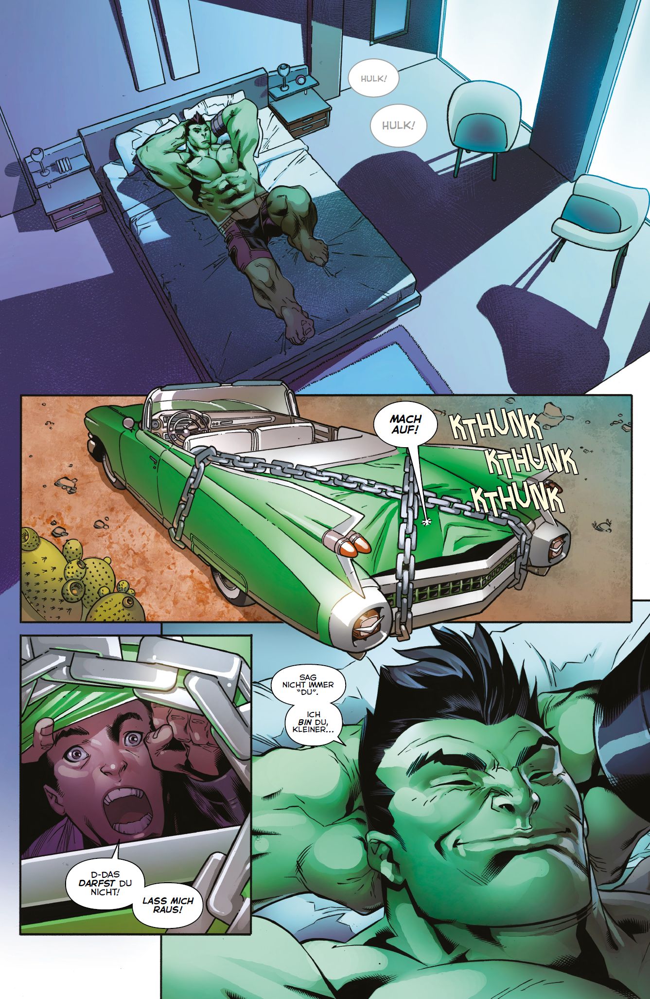 GAMMA-GENIE von Christian EndresAmadeus Cho, einer der genialsten Menschen der Welt, hat den Fluch des Gamma-Goliaths auf sich geladen. Doch auch als Hulk war er noch so smart wie zuvor und hatte seine Wut meist gut unter Kontrolle. Zusammen mit seiner Schwester Maddy kämpfte er gegen allerhand Monster. Später wurden er, Jimmy Woo, Netzschwingerin Silk und andere vom außerirdischen Prinz Phalkan entführt, woraufhin Amadeus mit Alpha Flight um Captain Marvel und Sasquatch zusammenarbeitete. Nach Bruce Banners Tod traf er zudem auf Black Panther, während er mit Ms. Marvel, Nachwuchs-Wandkrabbler Miles Morales und anderen das Champions-Team bildete. Zuletzt reiste Amadeus auf den Planeten Sakaar. Um dort einen neuen Unterdrücker in die Schranken zu weisen, musste Amadeus gegen die Krieger des Warlords kämpfen, zu denen sogar der fremdgesteuerte Odinsohn gehörte. Angesichts dieser Herausforderungen ließ Amadeus die Hulk-Persönlichkeit ganz von der Kette. Am Ende übernahm dieser Hulk das Steuer und sperrte Amadeus in seinem Bewusstsein im Kofferraum eines Autos ein. Nun kehren er und der Ase auf die Erde zurück...